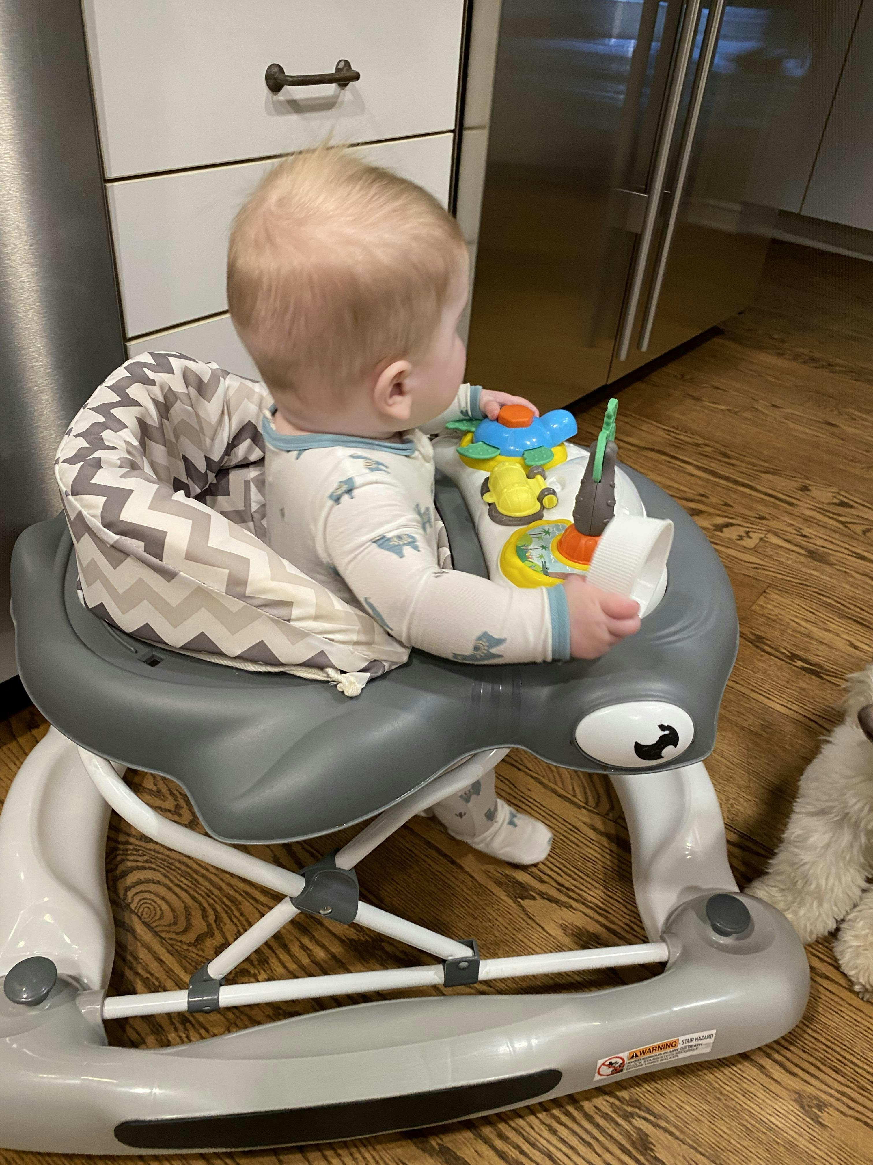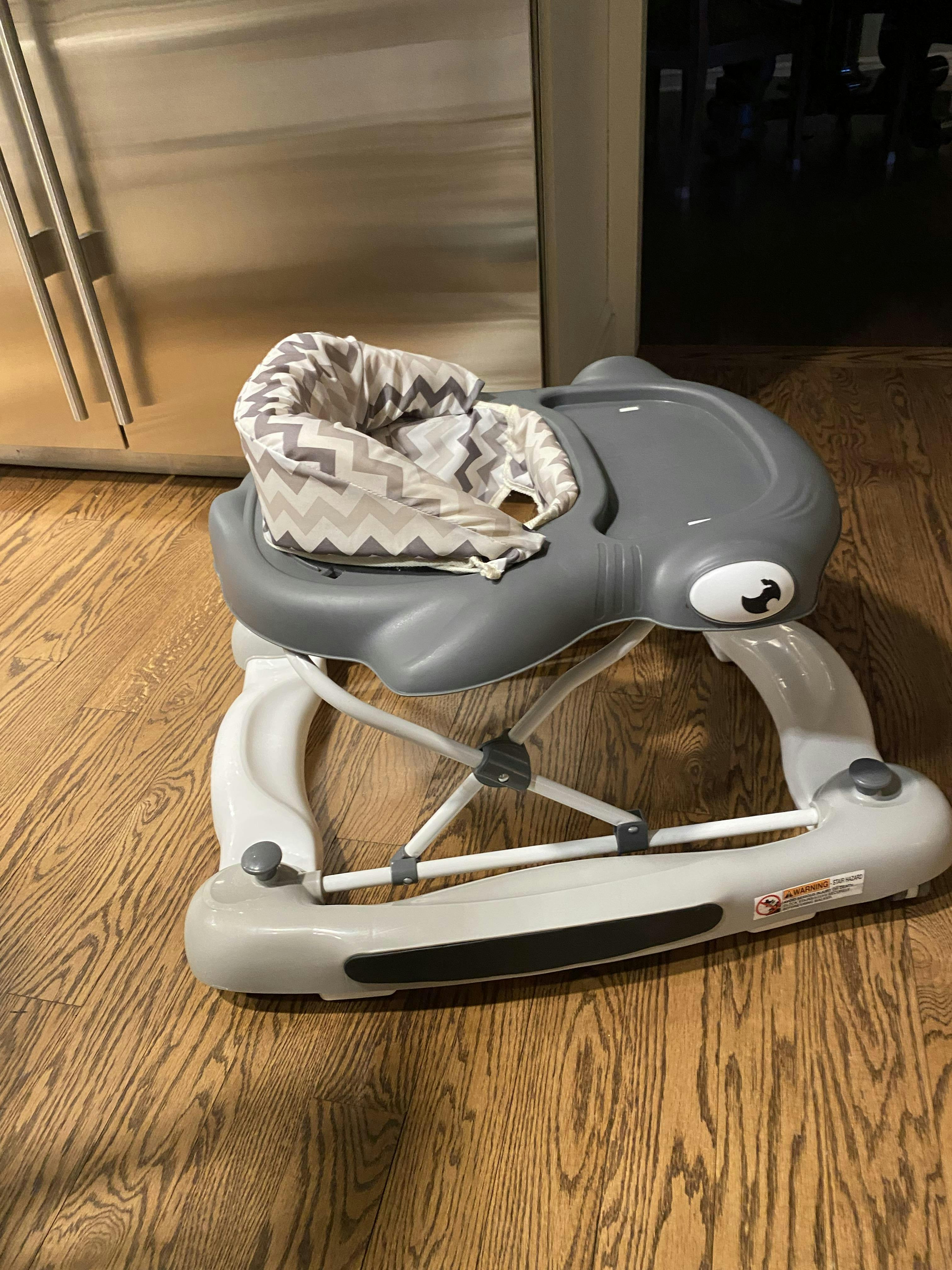 Let your LO discover the magical world of walking in the 2-in-1 Aloha Fun Activity Baby Walker. Let them take those exciting first steps, secure in the seated activity walker with entertaining toys to keep them company. And when those tired legs need a rest from exploring, use it as a relaxing! The Aloha comes with multi-directional wheels for easy and smooth maneuvering. It conforms to ASTM F977 Safety Standards. Is suitable for babies between 6 and 24 months of age. Let your child develop their fine motor skills playing with the fun toys on the colorful removable toy tray. Below it is a fixed snacks tray for quick bites! The Aloha keeps pace with your growing baby with the 3-position height setting. Use the removable fabric footrest when stationary. It comes in three charming colors and prints. The seat-pad is comfy and padded; cleaning is easy – simply remove and machine wash the pad when it gets dirty. Wipe plastic parts with a damp cloth using mild soap. The Aloha folds compactly making it convenient for storage and travel. Products specs are 29 L x 25 W x 21 H inches and it weighs 10.2 lbs. Please note for walkers that convert to activity center can have up to 24 months age range. For JUST walker function, it should be up to 12 months.