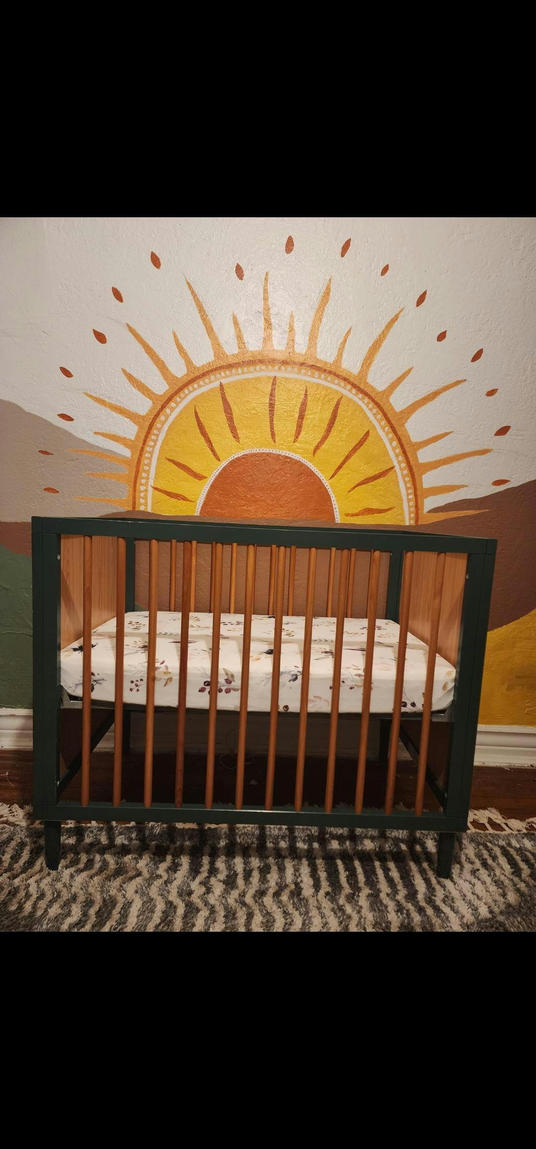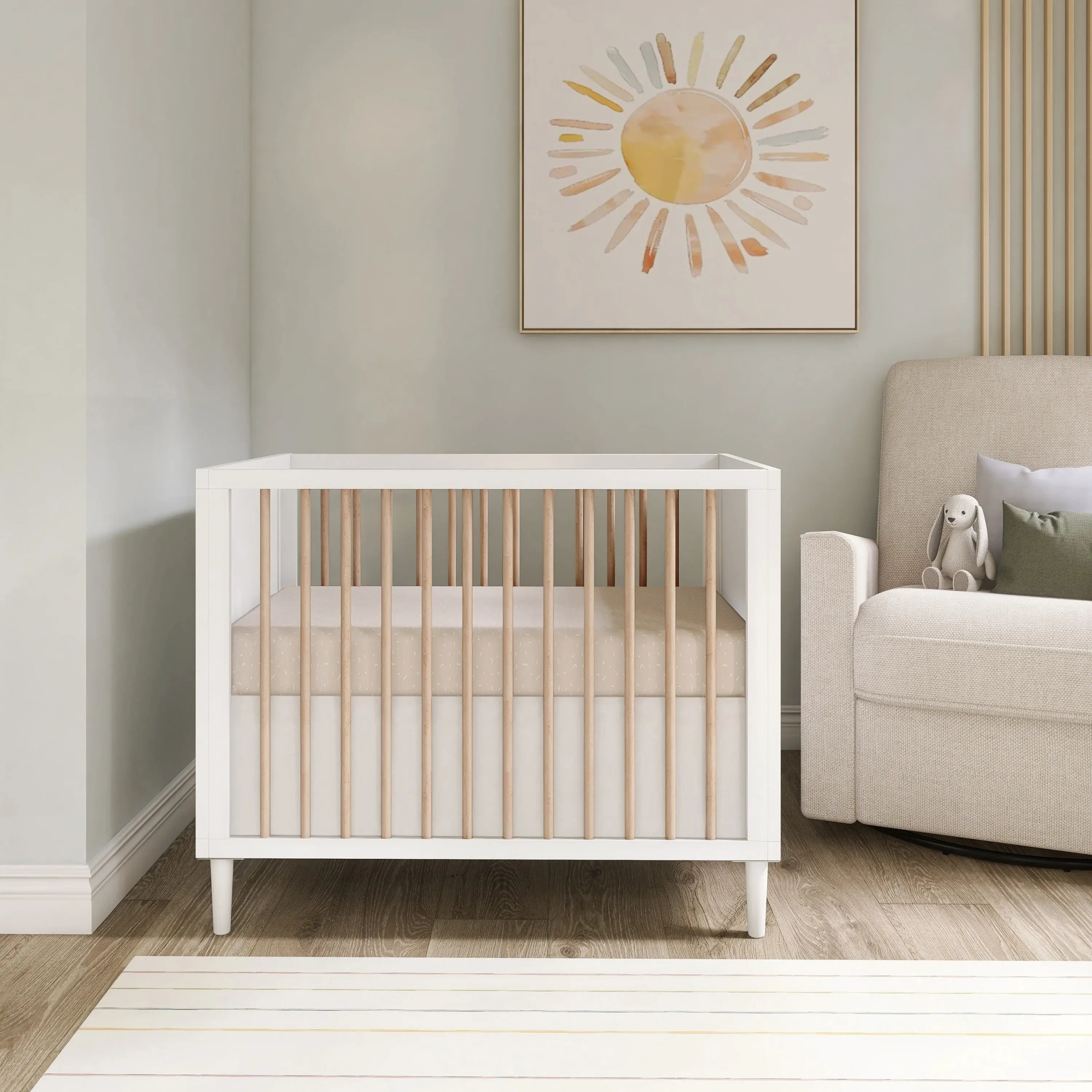 - STYLISH DESIGN: The Lucas Mini Crib fits easily into any nursery decor thanks to its mid-century meets modern design. Its simple clean lines, full side panels, rounded spindles and tapered legs give it a timeless vibe.