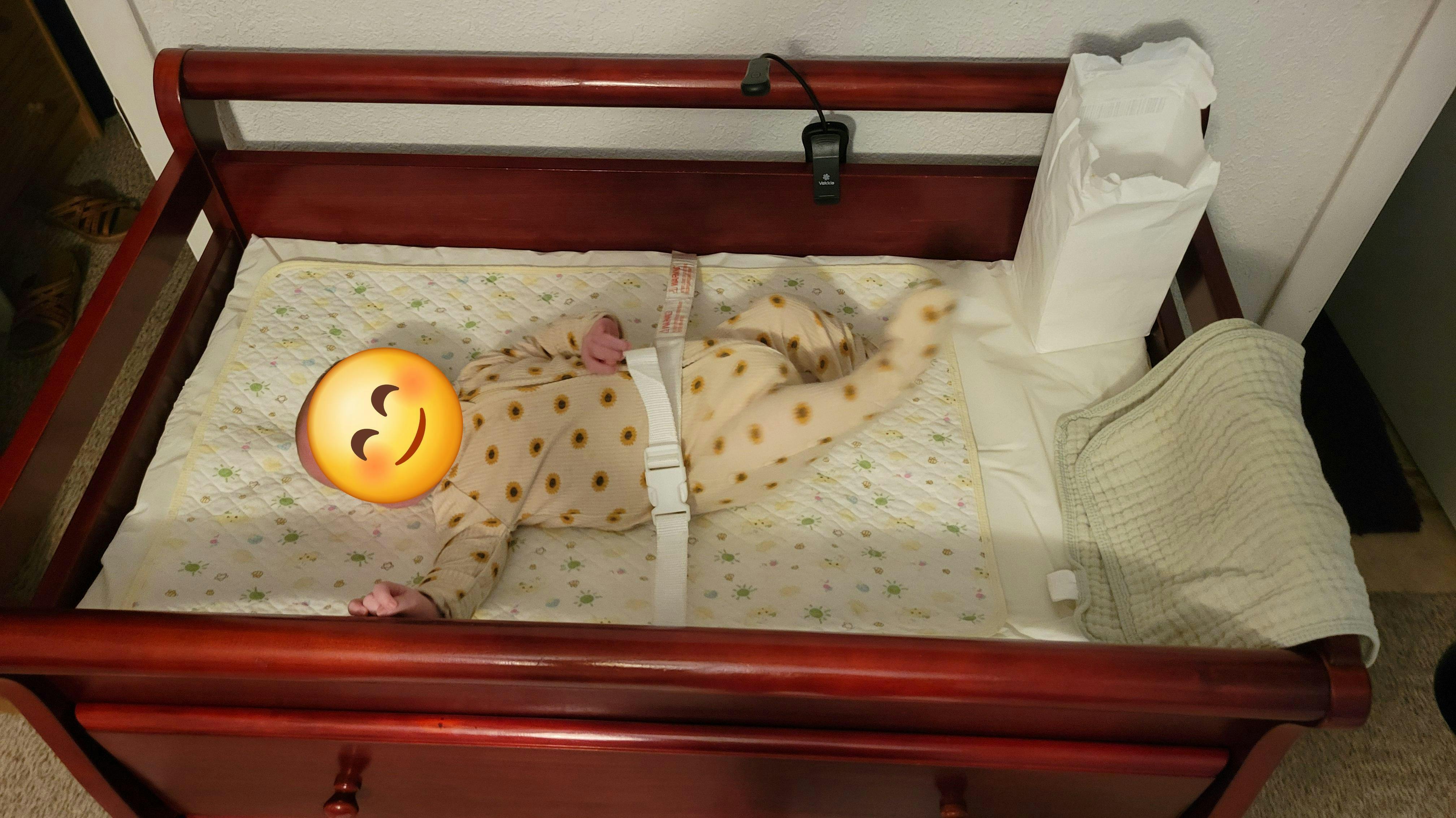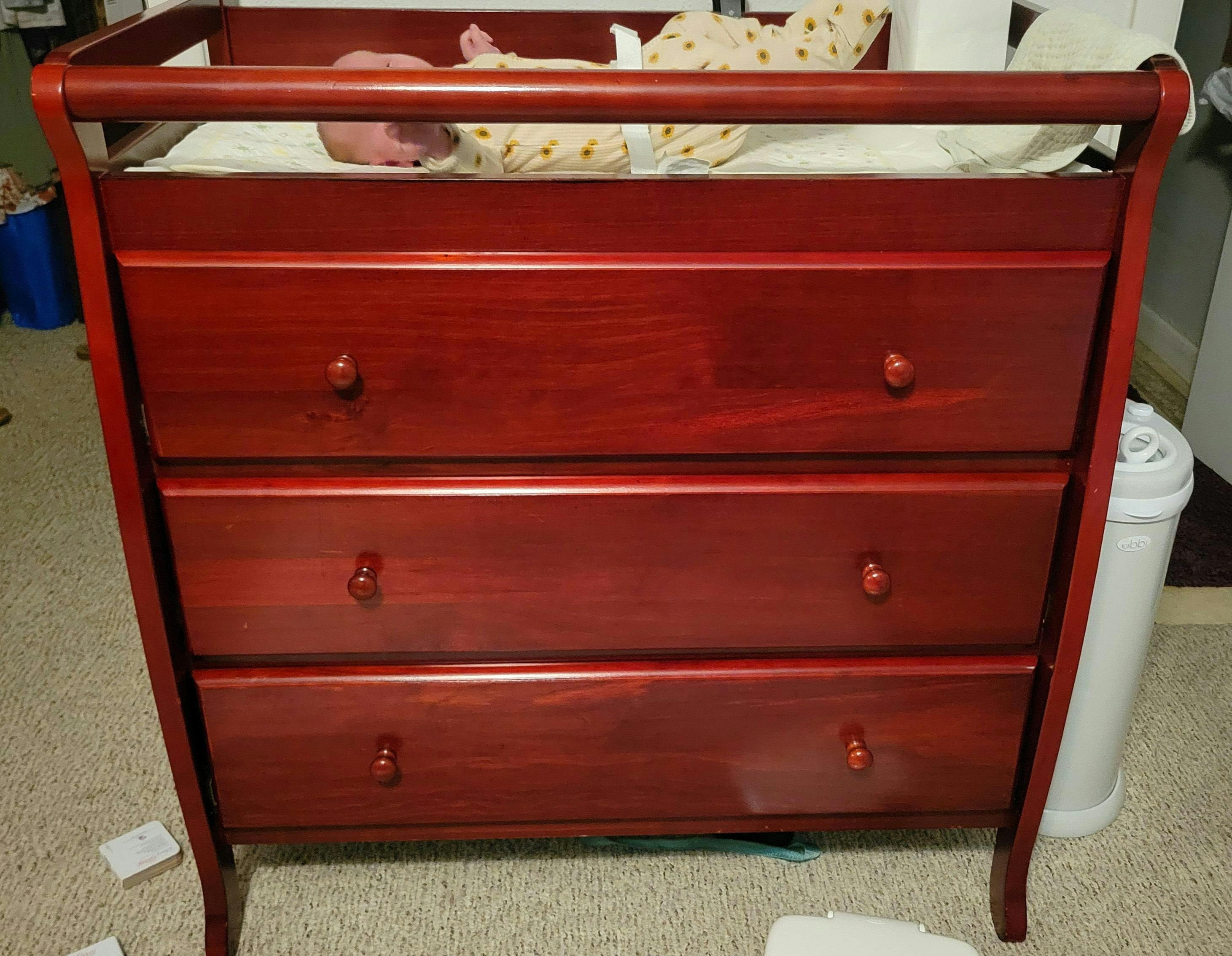 - CONVENIENT CHANGING AREA: The Liberty’s sturdily crafted safety rail creates a safe and secure changing space for your child. It comes with a 1” thick changing pad and a restraining strap with easy release buckle that keeps your baby safely in place. Do not use abrasives.
