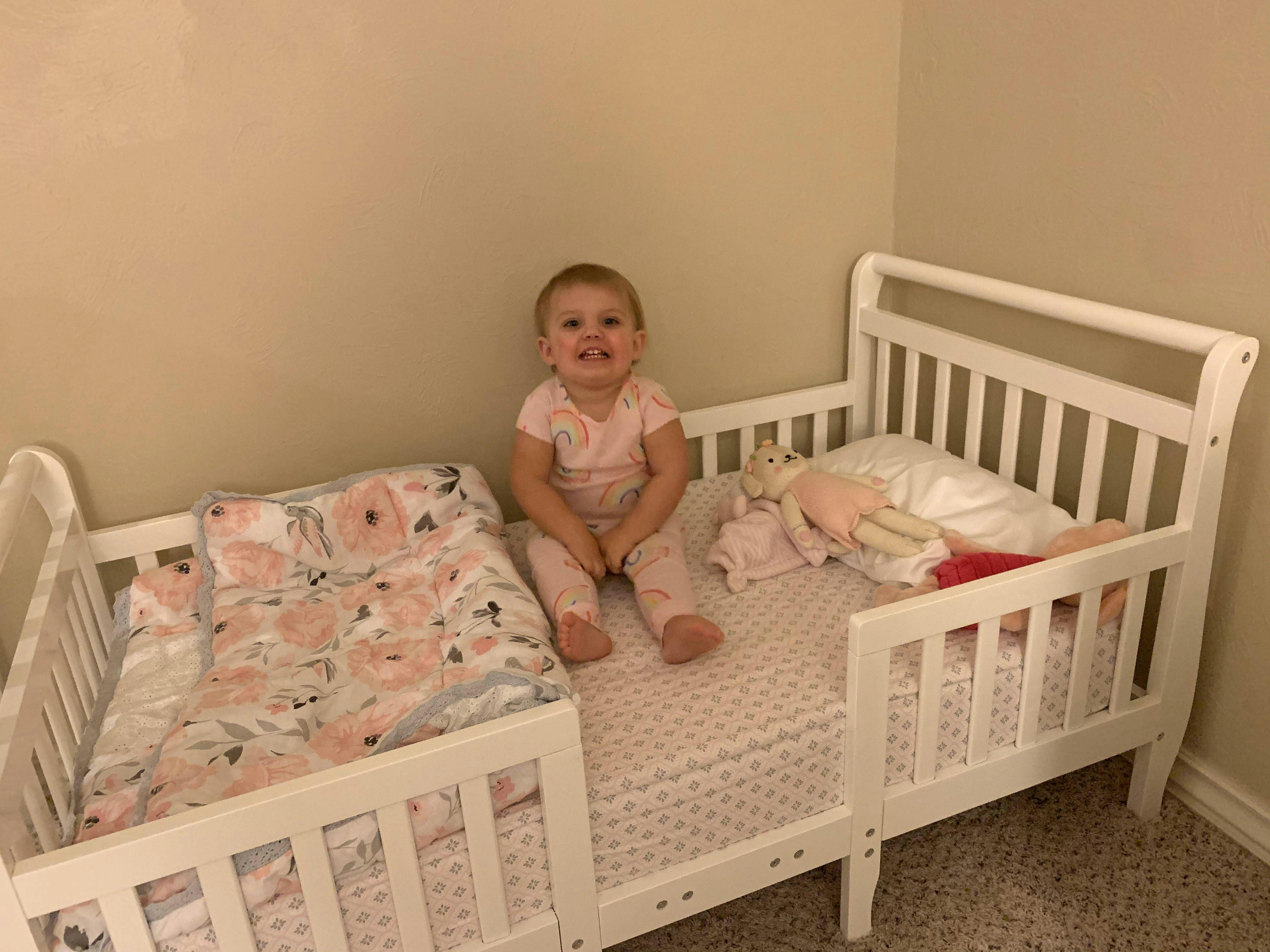 - CONVENIENT TRANSITION BED: The Emma 3-in-1 Convertible Toddler Bed sports a low-to-floor & patented design making it easy for your child to get in and out of bed. The bed comes with four wooden safety side rails and is reinforced for stability with center legs.