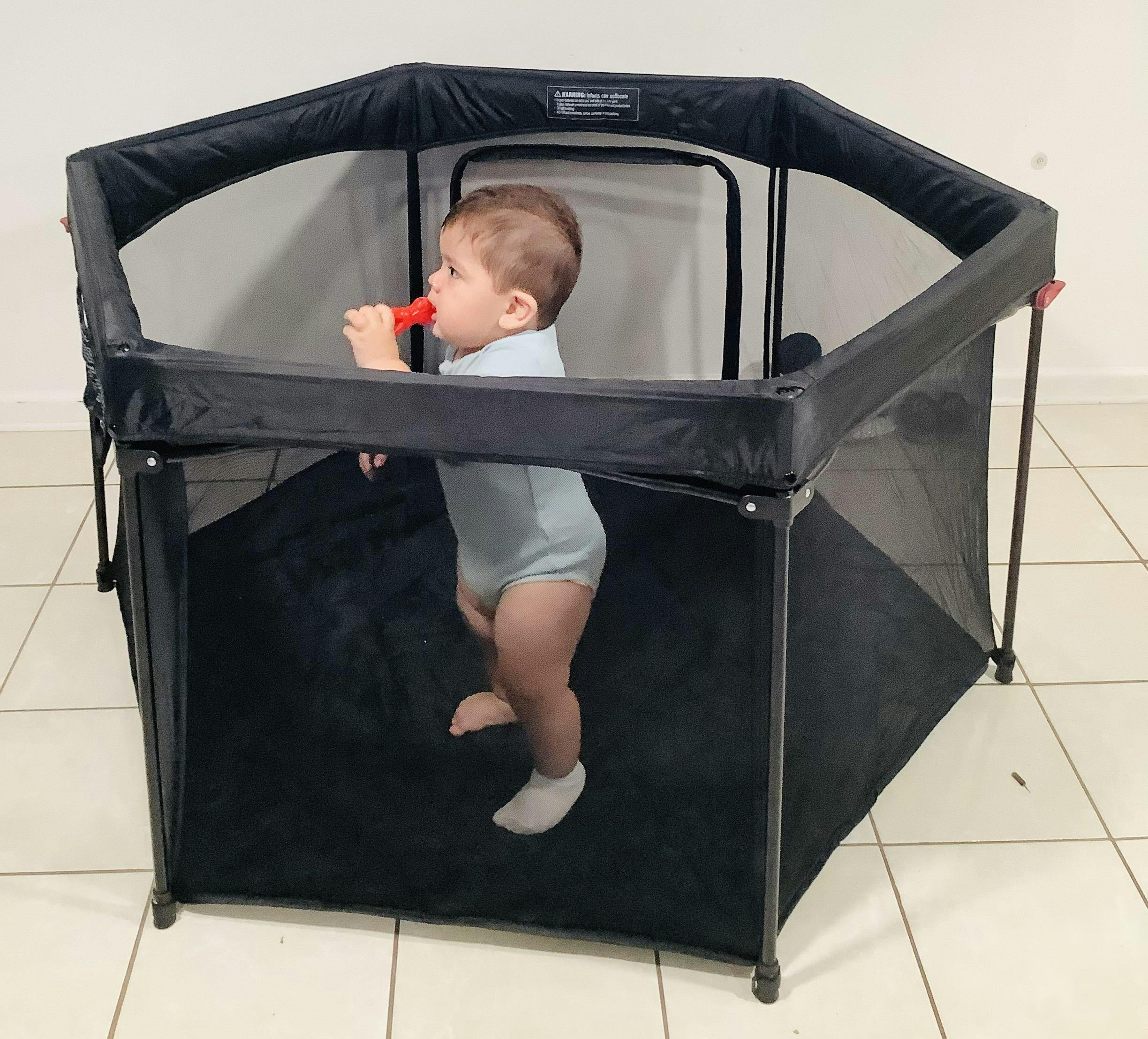 - USEFUL FEATURES: It comes with a thick padded floor that is comfortable for your baby to play on as well as catch a nap. It is available in two colors. Use it with the Onyx canopy to shade LO from the sun as well as protect from bugs (sold separately).