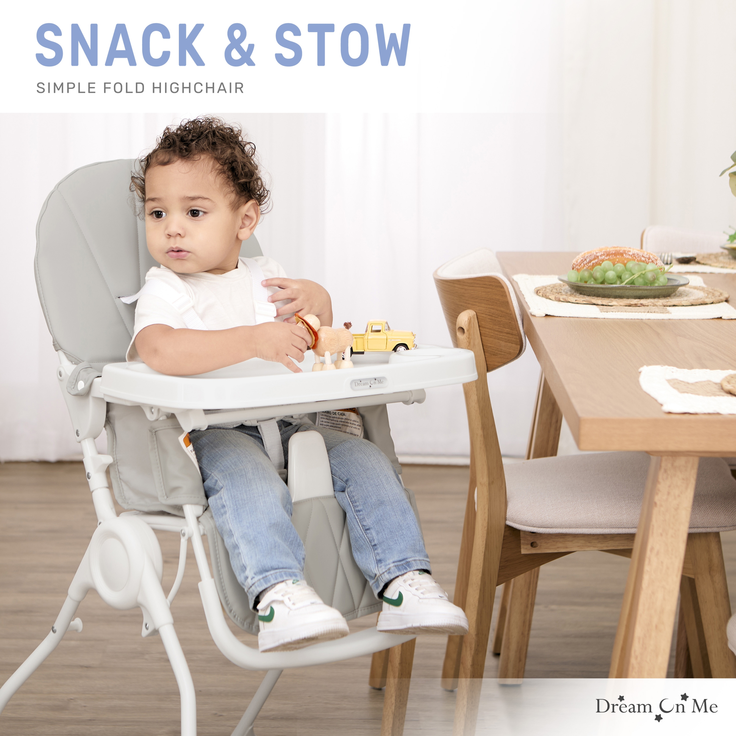 Introducing the Dream On Me Snack & Stow Highchair, for hassle-free mealtime moments! Elevate your home decor while providing a comfortable seating solution for your little one. Effortless to store or transport when not in use, the Snack & Stow Highchair features an easy and compact fold. Ensuring peace of mind for parents during mealtime, it meets/exceeds ASTM standards for safety and durability. Available in four chic variations—Olive, Cognac, Koala Grey, and Mauve – this lightweight highchair combines modern design with practical functionality. Product dimensions are 39.7” L x 32.2” W x 24.8” H, with a weight limit of 33 Lbs. This product can be used by children from 6-36 months.