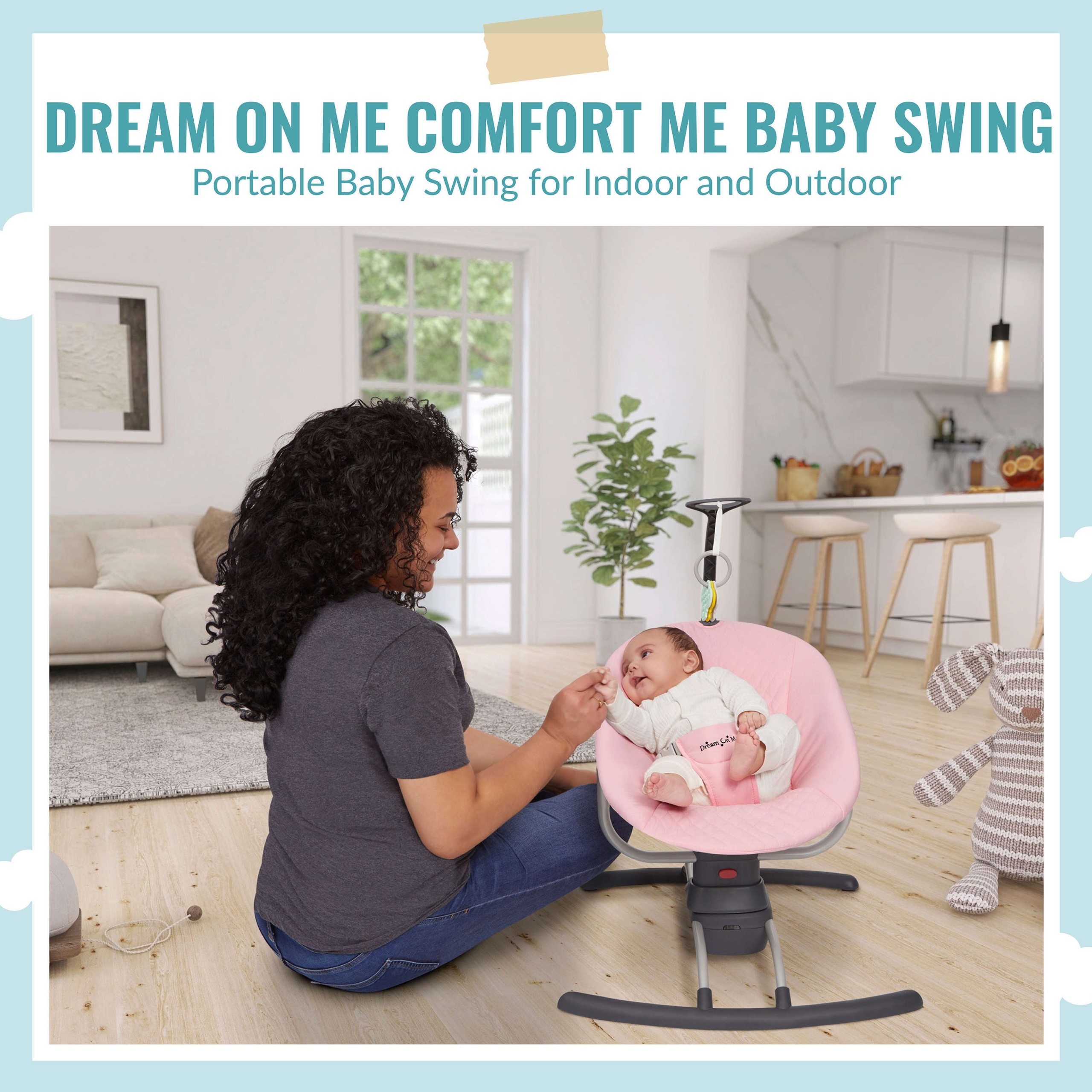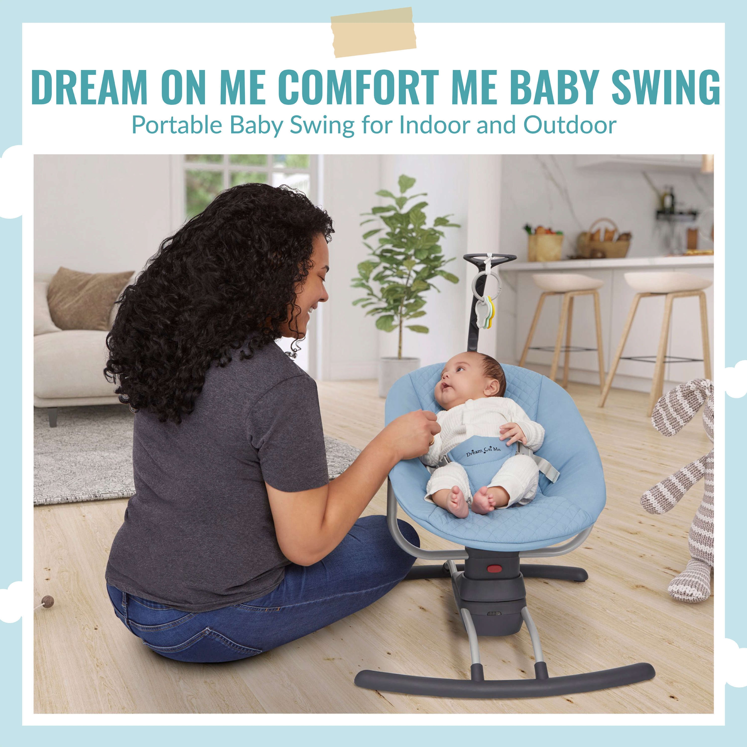 • SAFETY FIRST: Prioritizing your child’s safety, the Dream On Me Comfort Me Swing meets/exceeds the ASTM standards and comes with a safety harness to secure them in place.