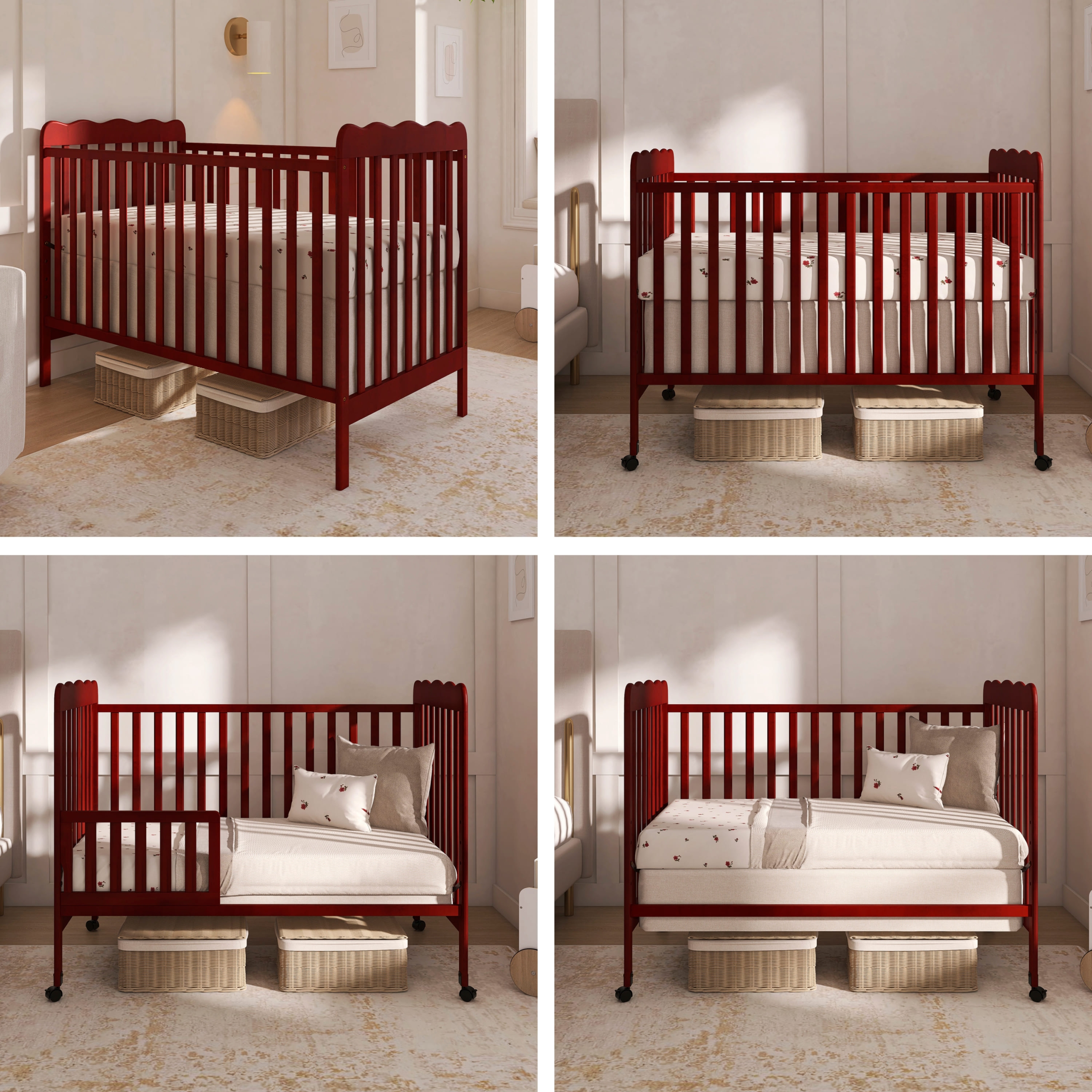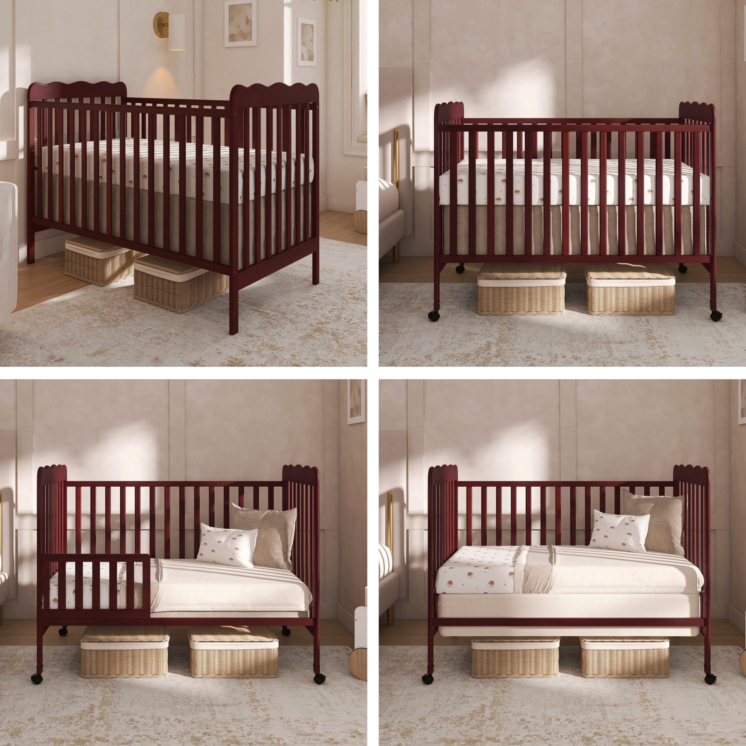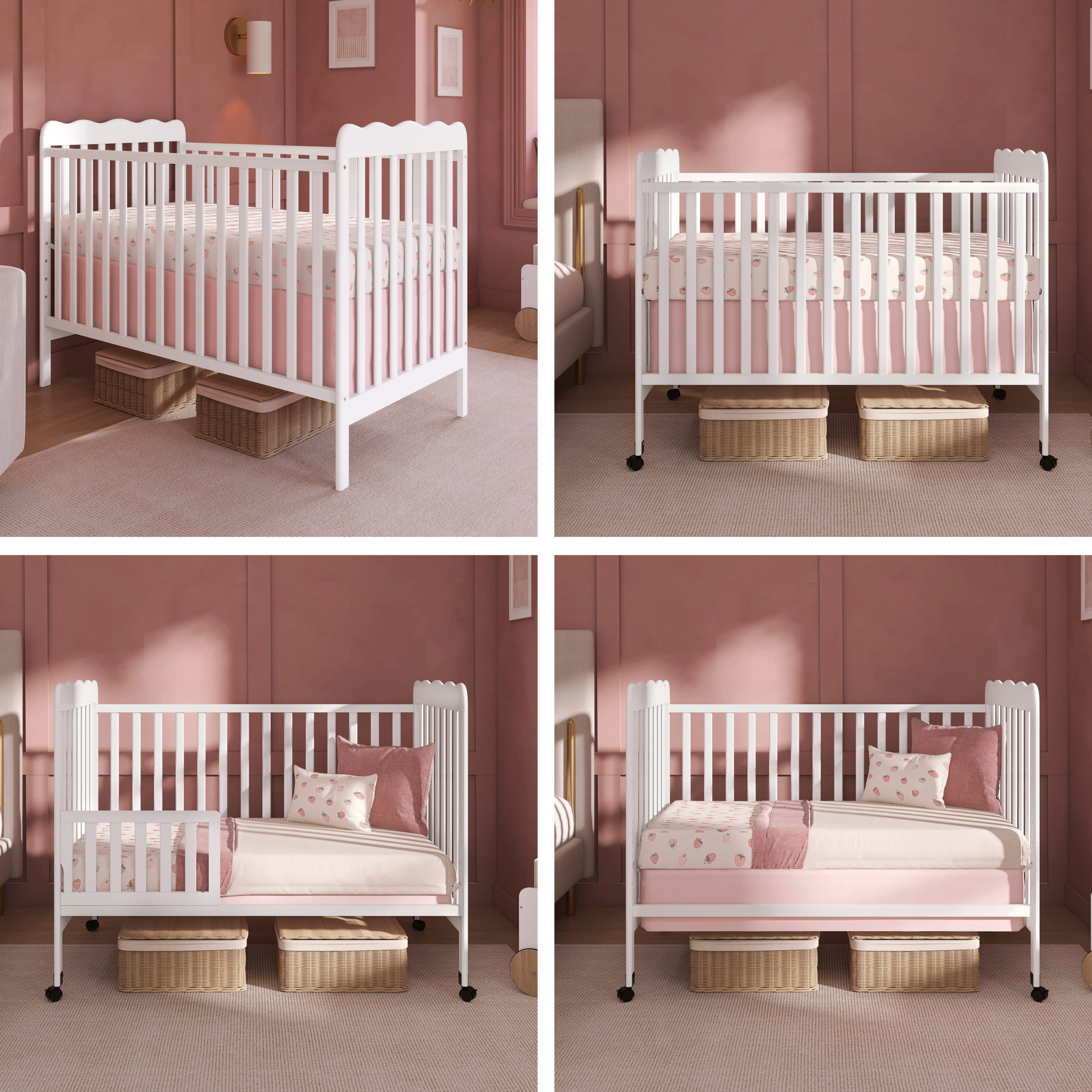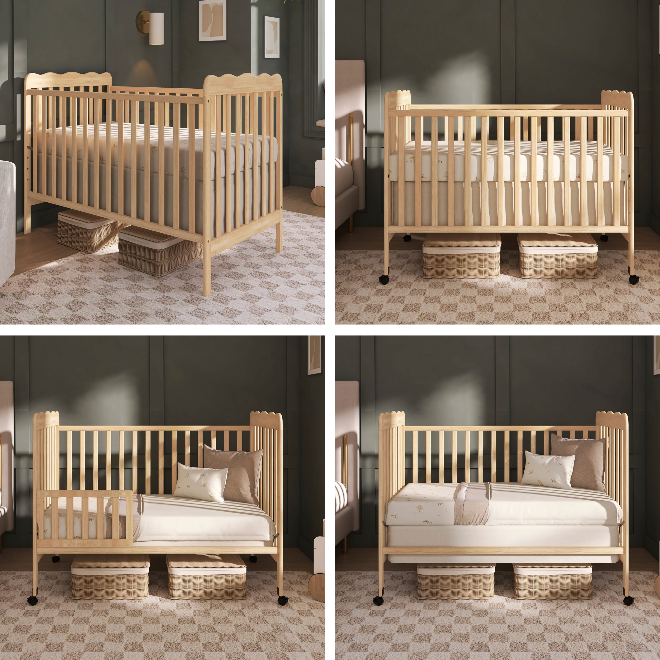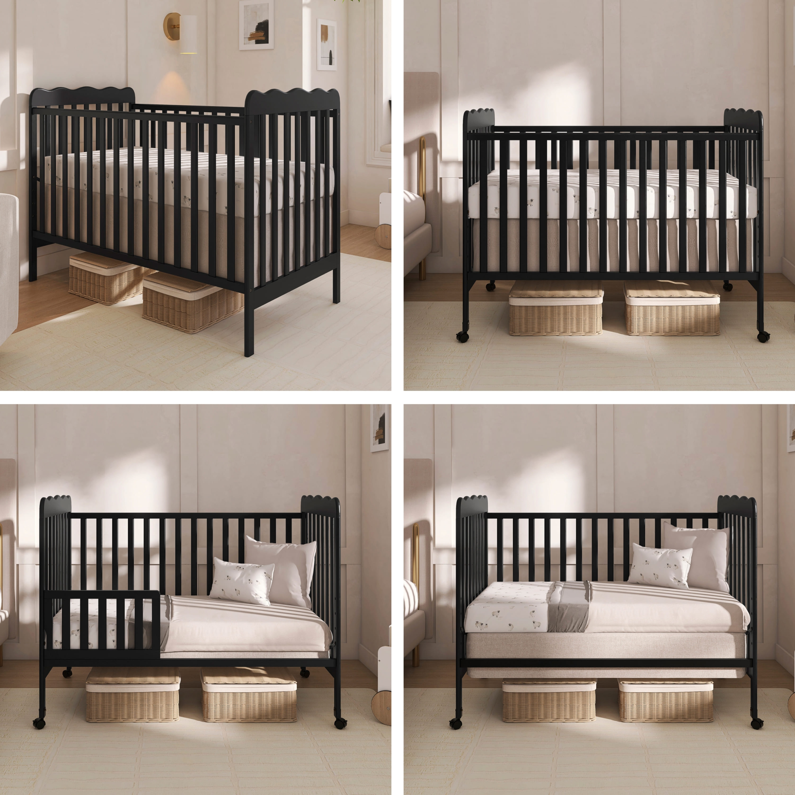 The Carson 3-in-1 Convertible Crib has an elegant vibe, perfect to design that stylish nursery for your baby! It converts from a crib into a toddler bed (use Dream On Me Universal toddler guard rail for conversion, sold separately) and a daybed (stabilizer bar sold separately), perfect for those early growing years. With 4 mattress height positions, the Carson can be adjusted according to the age of your baby. Use it in the highest setting first and gradually set it lower as your child grows. Other useful features include dual hooded, safety-locking wheels that can be removed, giving you the flexibility to use it as a stationary crib when needed. Built of renewable, sustainable & durable New Zealand pinewood, the Carson’s design is a mix of straight and curved lines that blend beautifully with any room decor. Available in stylish, non-toxic finishes to mix and match and create a stylish nursery! The Carson comes with a stationary (non-drop side) rail design for added security, is BSA Verified and meets all applicable ASTM/CPSC standards. All tools for assembly included. The Carson measures 54 L x 31 W x 40 H inches and the maximum weight capacity is 50 lbs. For the best fit, we recommend any Dream On Me or Evolur full-size, Greenguard certified mattress.