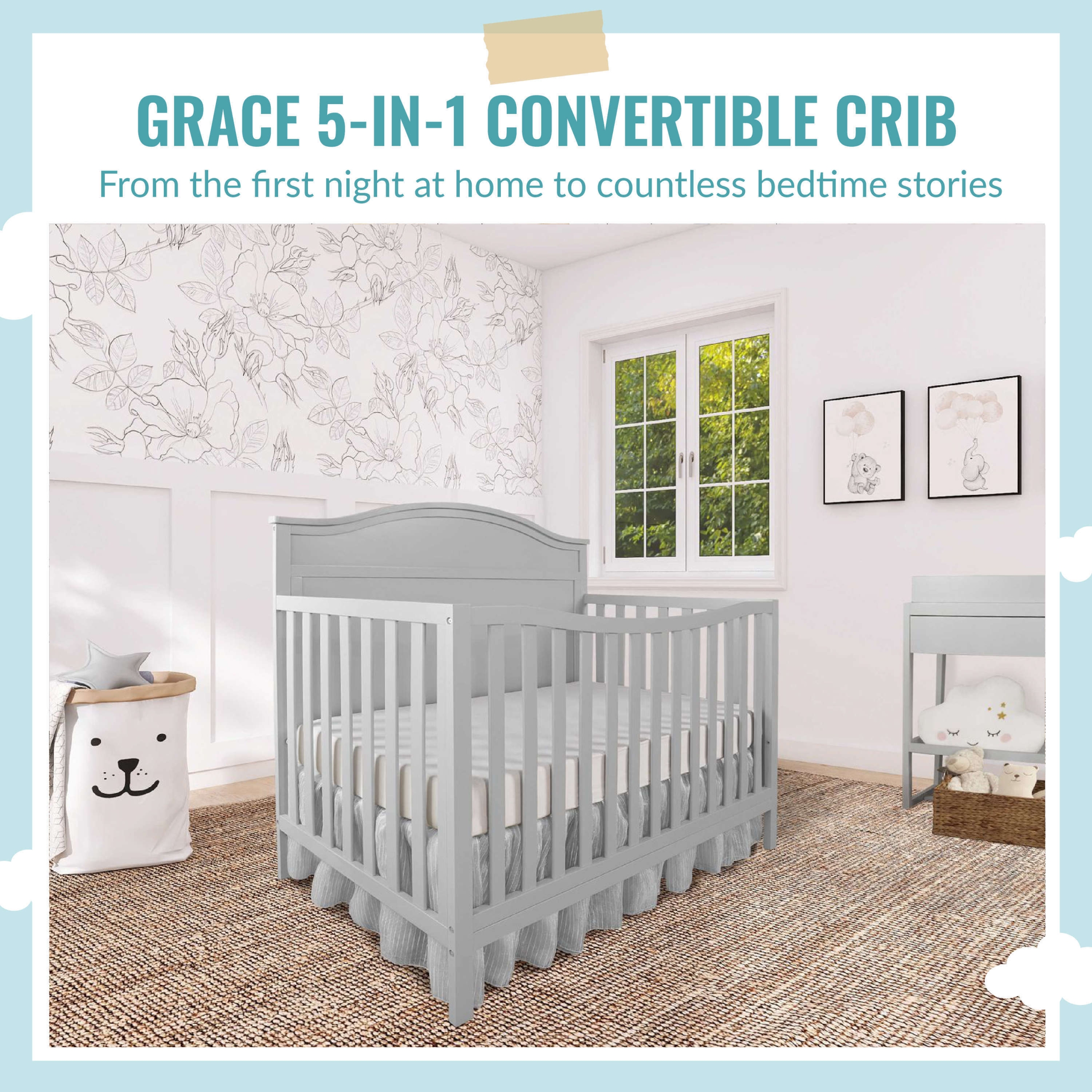 - THE SAFE CHOICE: The Grace 5 in 1 Convertible Crib is not only BSA & Greenguard Gold certified, but also meets/exceed the ASTM &; CPSC standards.
