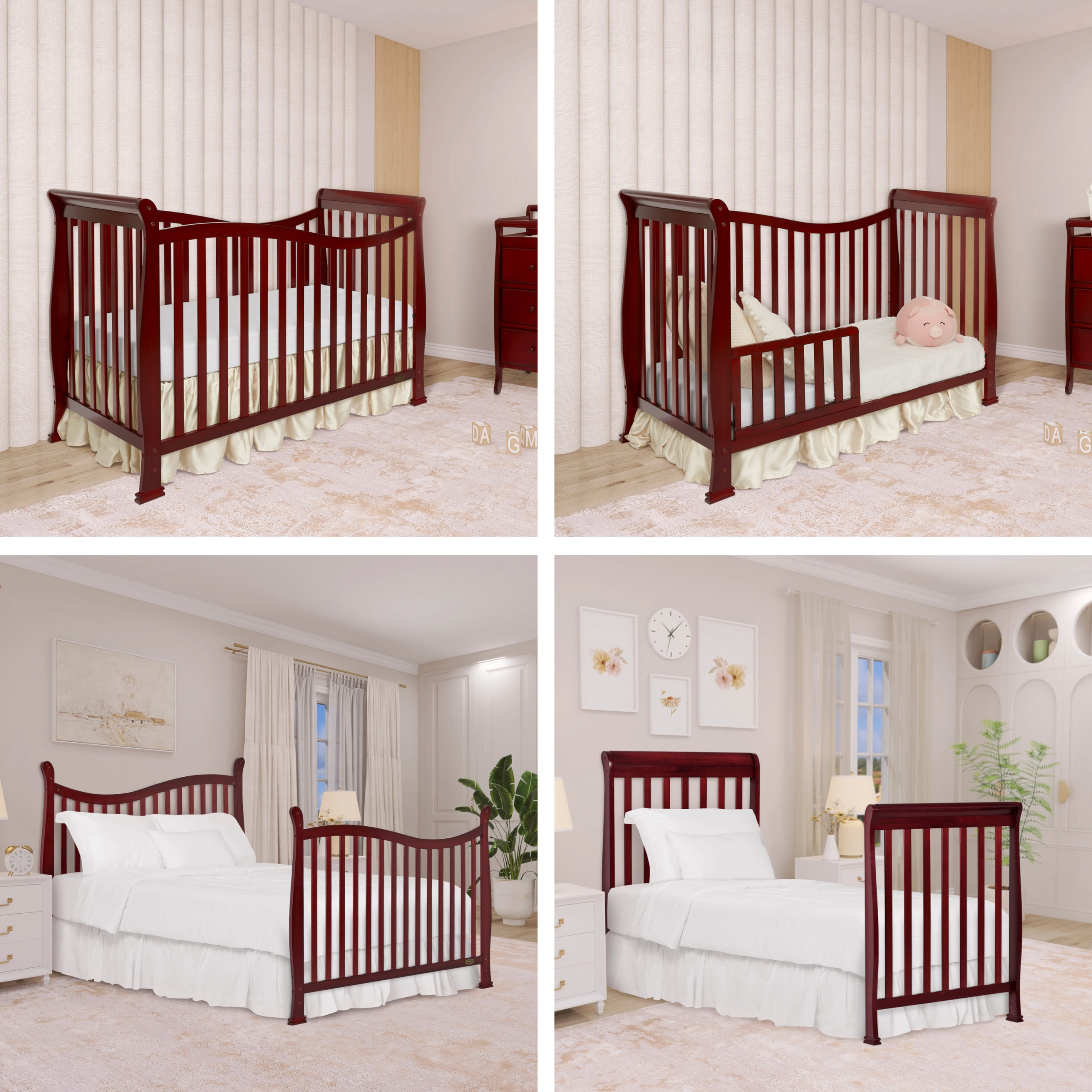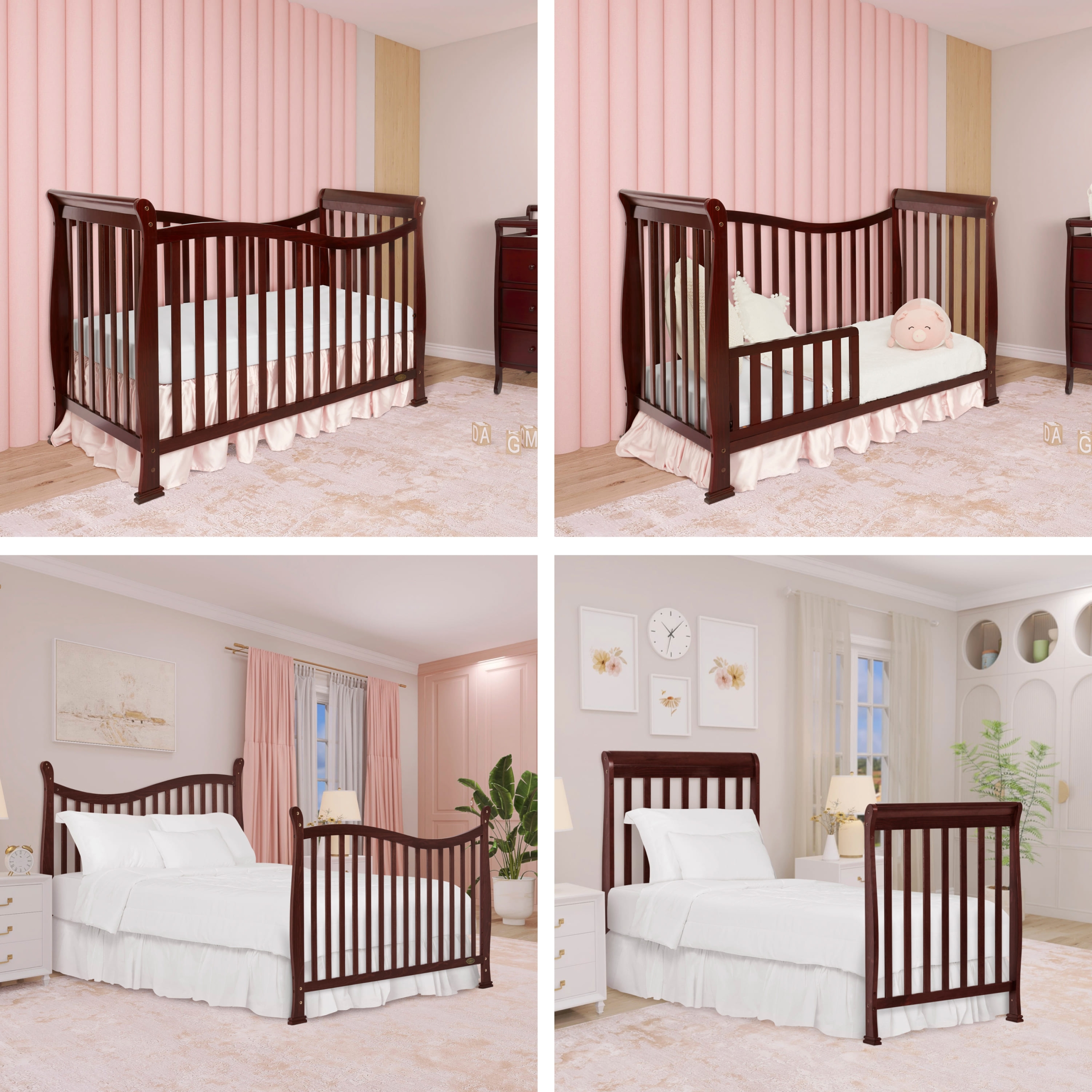 The charming Violet 7-in-1 Convertible Lifestyle Crib is a timeless piece of furniture that grows with your child, transitioning easily from childhood to adulthood. Safe and graceful, it keeps pace with your child with its myriad conversion options. Once your baby outgrows her crib, use it as a comfy toddler bed, daybed, youth bed and full size bed to match her changing needs! (toddler guardrail, full size rail and bed frame sold separately).