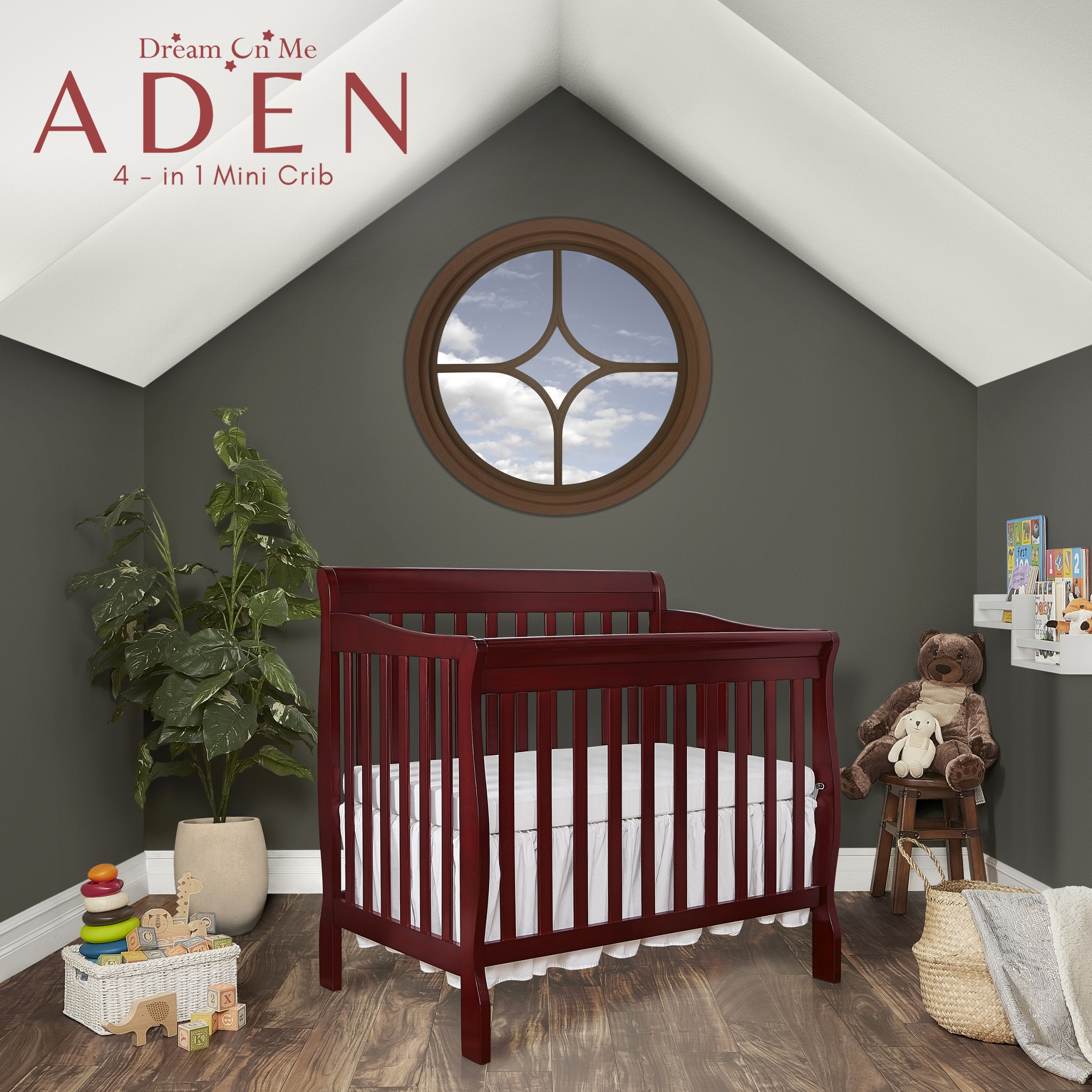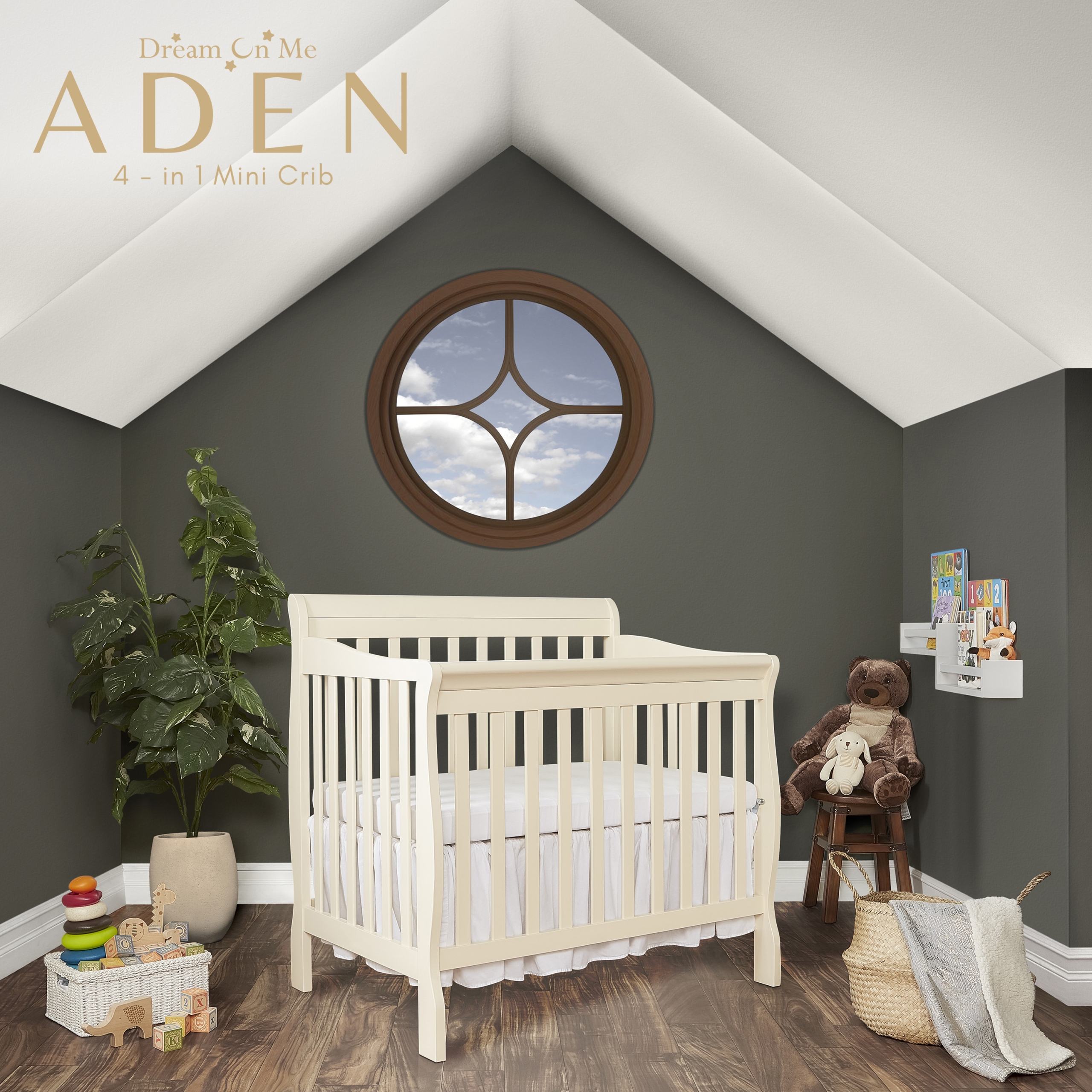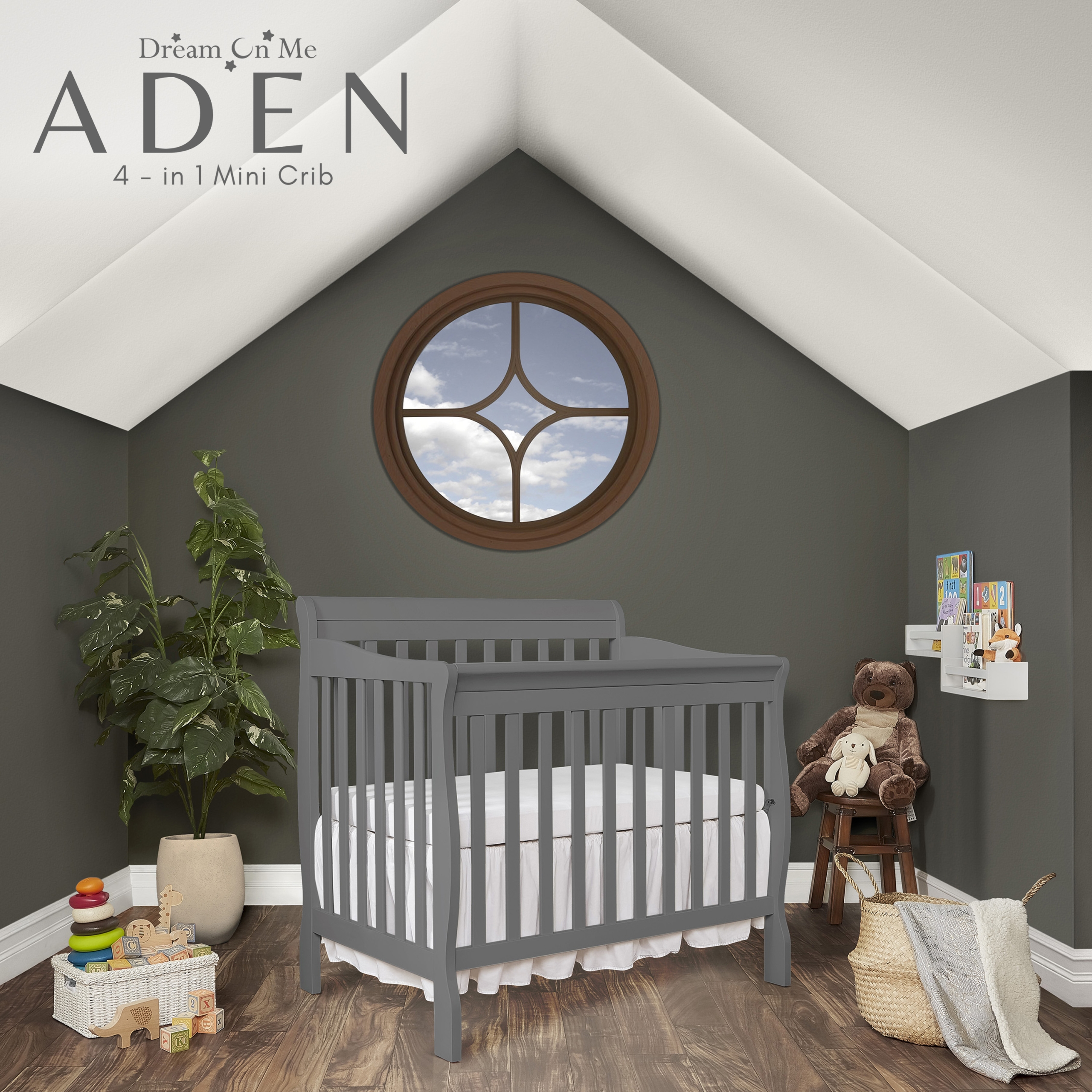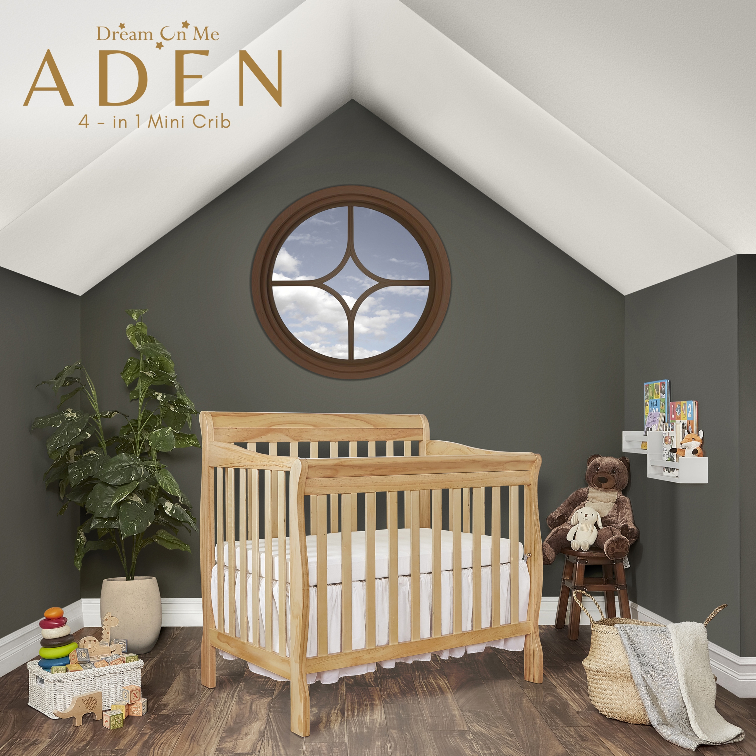 - LONG LASTING - Made of New Zealand pinewood, the Aden 4-in-1 Convertible Mini Crib is both durable and stylish. A clean design and small footprint allow it to fit into any nursery theme. All tools for assembly are included.