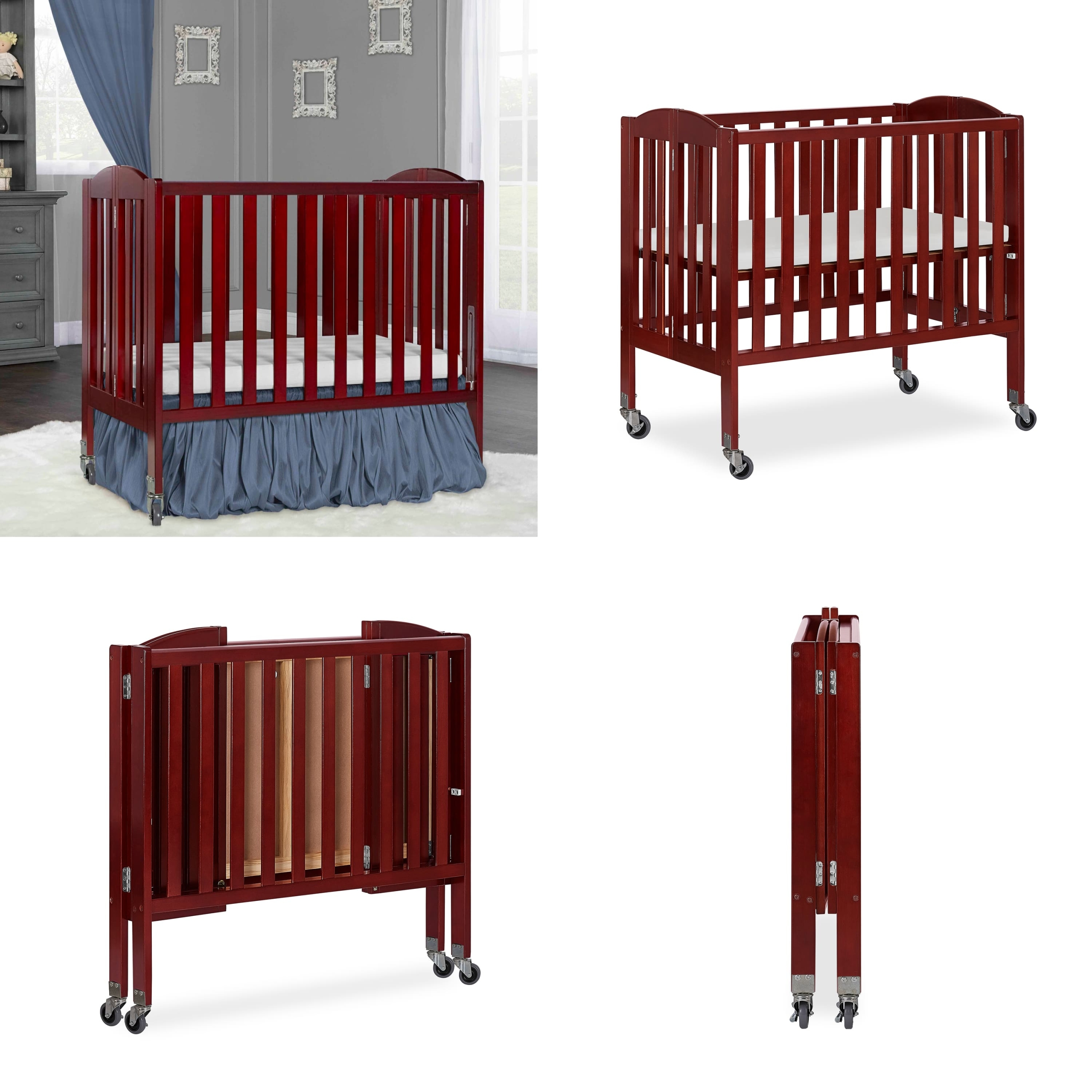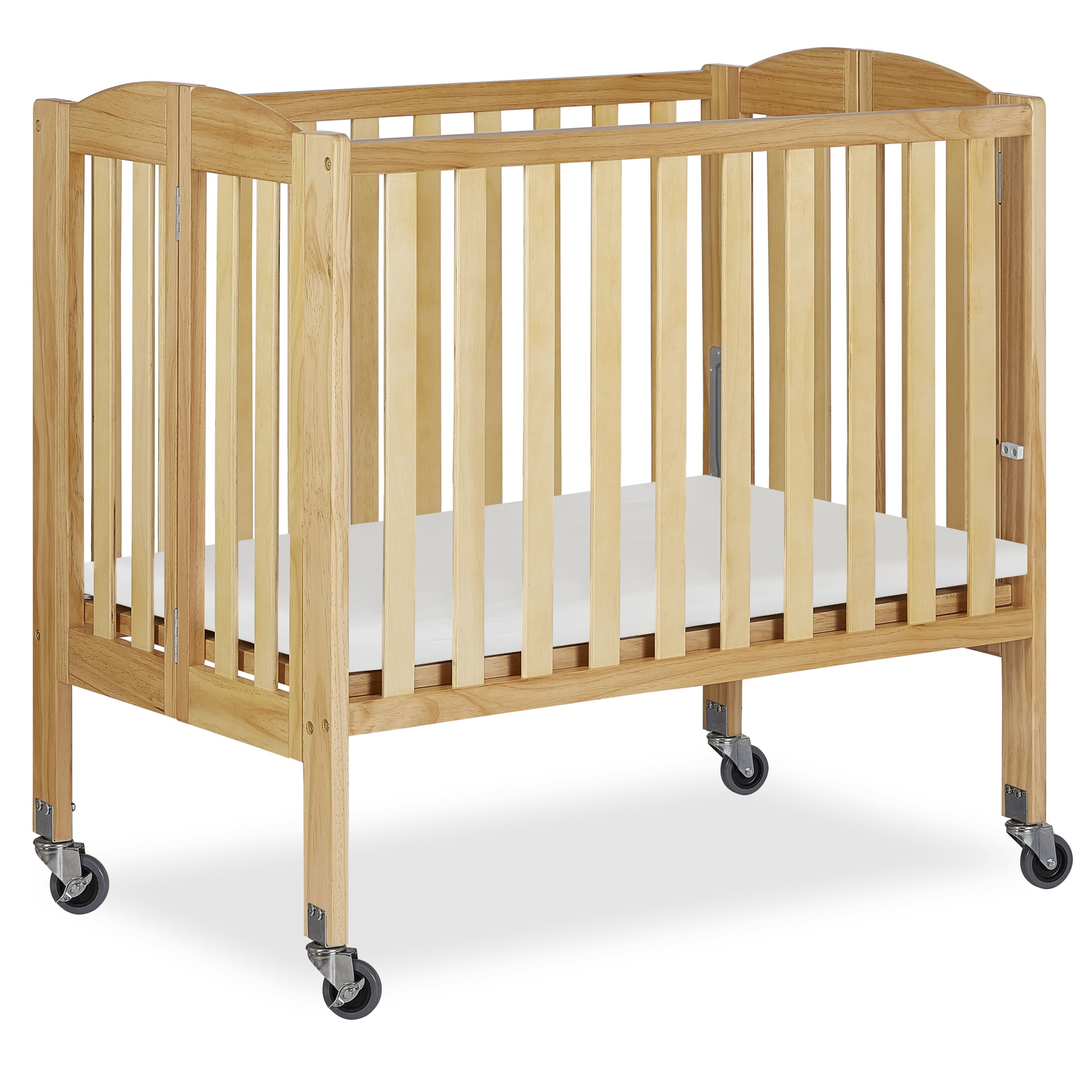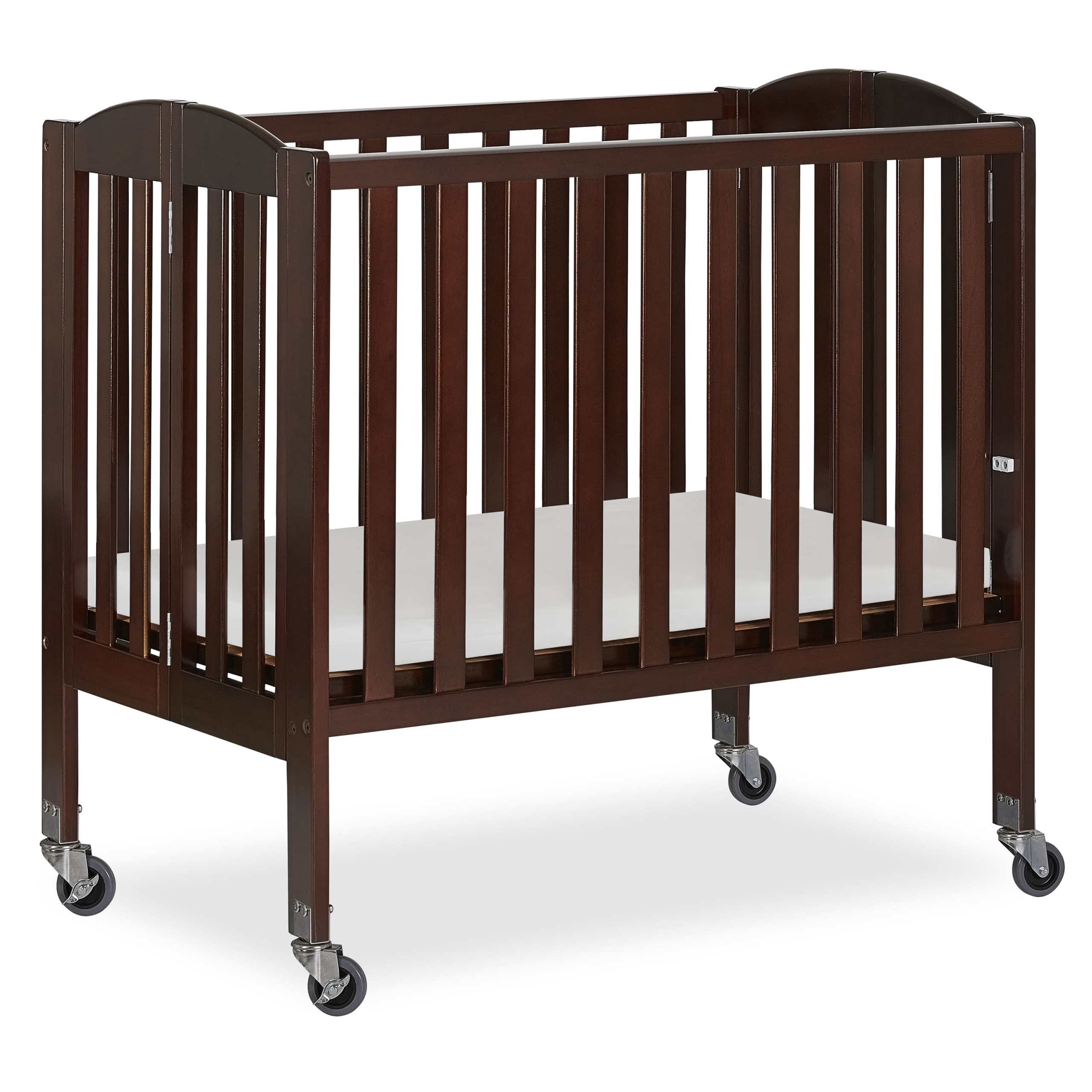 The Dream On Me 2-in-1 Folding Birch Portable Crib is a must for today’s urban, on-the-go parents and designed to make the most of small spaces. The crib assembles in a jiffy and the U.S. patented rail design easily helps convert the crib into a playpen in seconds. It makes for the perfect space-saver with the unique hinge system allowing it to fold flat for compact storage. It’s lightweight, portable frame with wheels makes it easy for you to move it around the house. Take it on your travels or to grandma’s house! Safety is a top priority at Dream On Me. The stationary (non drop side) rail system and heavy duty, locking, commercial size wheels provide the utmost in product safety. It meets the ASTM standards. It features a solid birchwood frame. It’s clean, minimalist design and beautiful finish options allow it to blend into any room decor. Crib dimensions are 40 L x 26 W x 38 H. Comes with a two-position mattress support. One inch crib mattress and tools for easy assembly included.