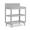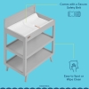 What makes diaper duty a total breeze and is also a perfect spot to pamper and embrace your little one? It’s the all-new Fisher Price by Dream On Me Sanibel Changing Table! With 2 sturdy shelves that provide ample storage space, organize your diapers, wipes, creams and other changing essentials as you cradle your sweet one. Made of sustainable New Zealand Pinewood and sturdy wooden spindles, this compact changing table is a warm and safe choice for your baby. Keeping in mind your child’s safety, the Fisher Price by Dream On Me Sanibel Changing Table meets/exceeds the ASTM & CPSC standards. For your complete convenience, this easy-to-maintain changing table comes with a 3.7” thick changing pad and a secure safety belt to keep your baby from fidgeting. A must-have in your nursery, this solid changing table comes in 2 charming, non-toxic finishes – Pebble Grey & White and features chic, modern legs & a rustic shiplap headboard design that adds a subtle, elevated charm. Product dimensions are 36 1/4″ L x 18 7/8″ W x 42 7/8″ H, with a weight of 31 Lbs and a maximum weight limit of 30 Lbs. This product can be used by children aged 0-6 months.