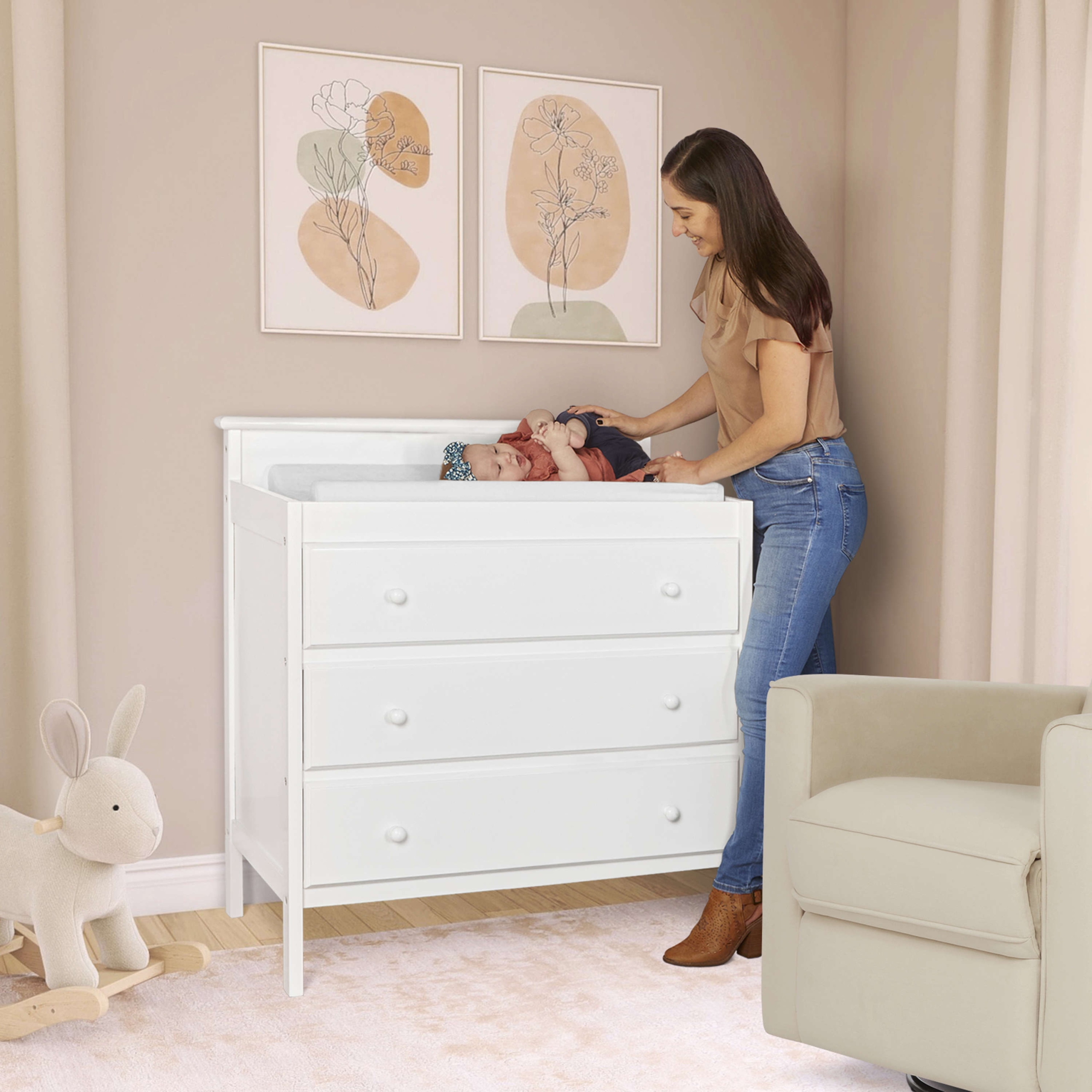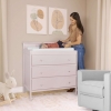 Meet every parent’s nursery must-have – the elegant and classic Mason Modern Changing Table from Dream On Me. For those moments that will have your baby cooing during changing time, this Changing Table comes with a comfy 1-inch-thick changing pad (included) for utmost convenience and comfort. Built with sturdy and solid New Zealand Pinewood, it’s safe with an anti-tipping kit and made of non-toxic, baby safe paints. ‘Spacious’ is the word as the Mason Modern Changing Table comes with 3 easy-to-reach and deep storage drawers that comfortably glide open and close, so you can store all your little one’s necessities with ease. Designed to fit into any nursery style and theme, it’s available in 4 beautiful finishes – Blush Pink, Olive, Storm Grey and White. The Mason Modern Changing Table meets or exceeds all ASTM & CPSC safety standards, and comes with all necessary tools for easy assembly!