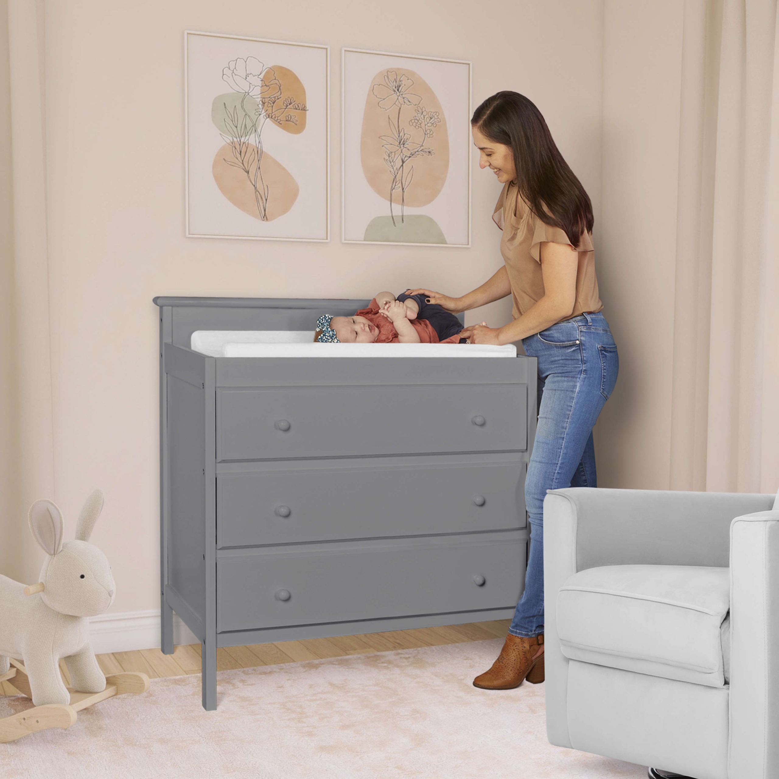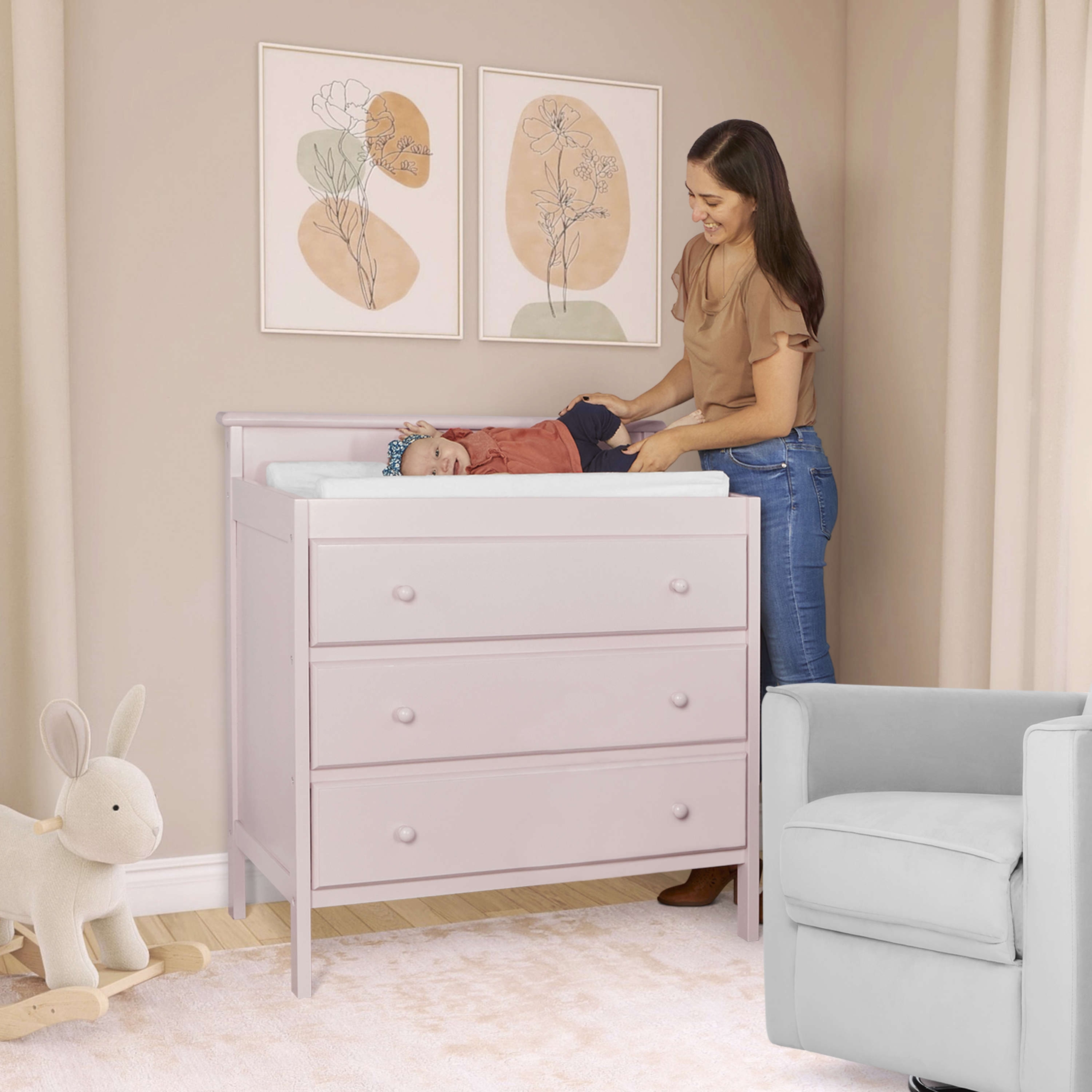• A FINISH FOR EVERY DÉCOR: The changing table is available in 4 beautiful, non-toxic and baby-safe finishes – White, Storm Grey, Blush Pink and Olive.