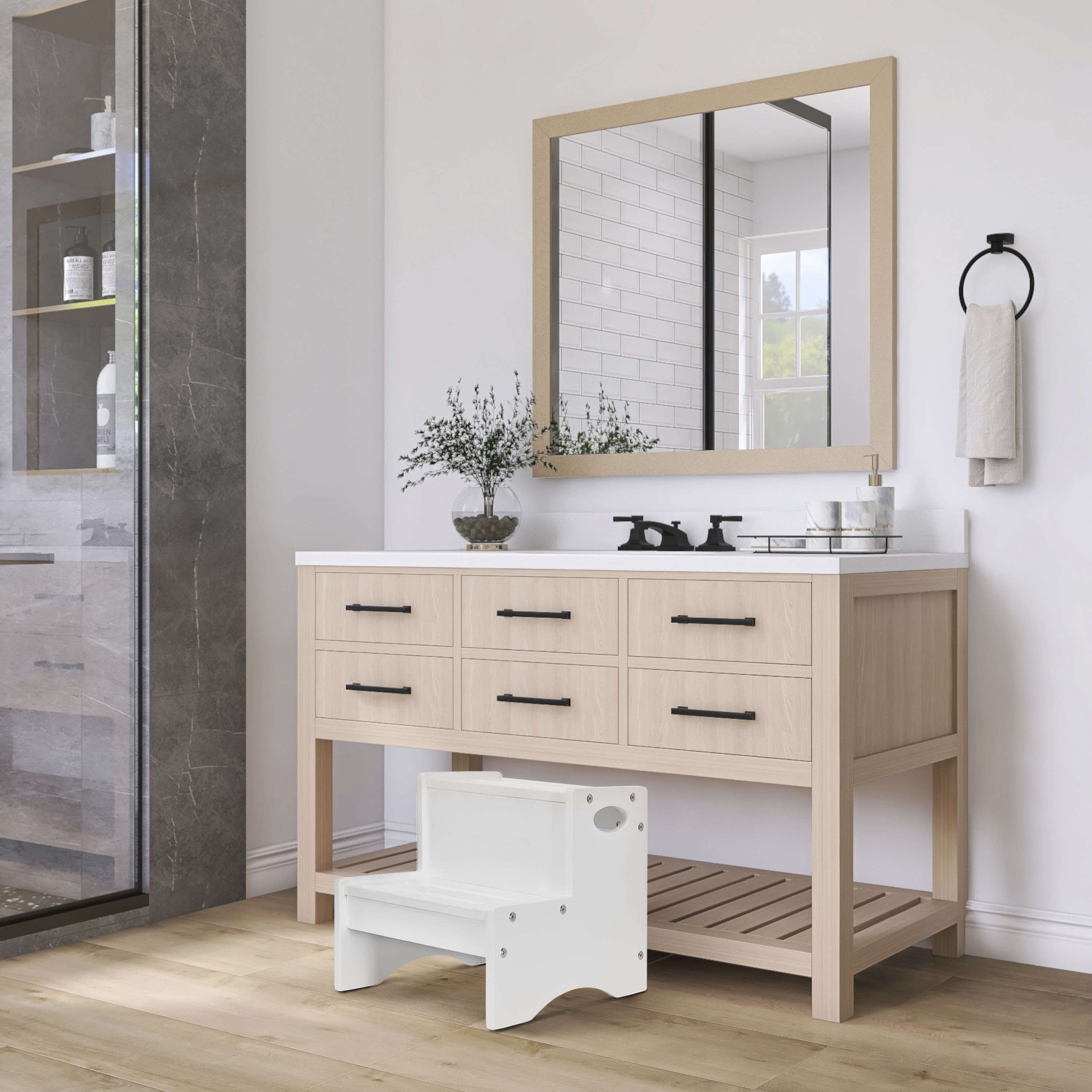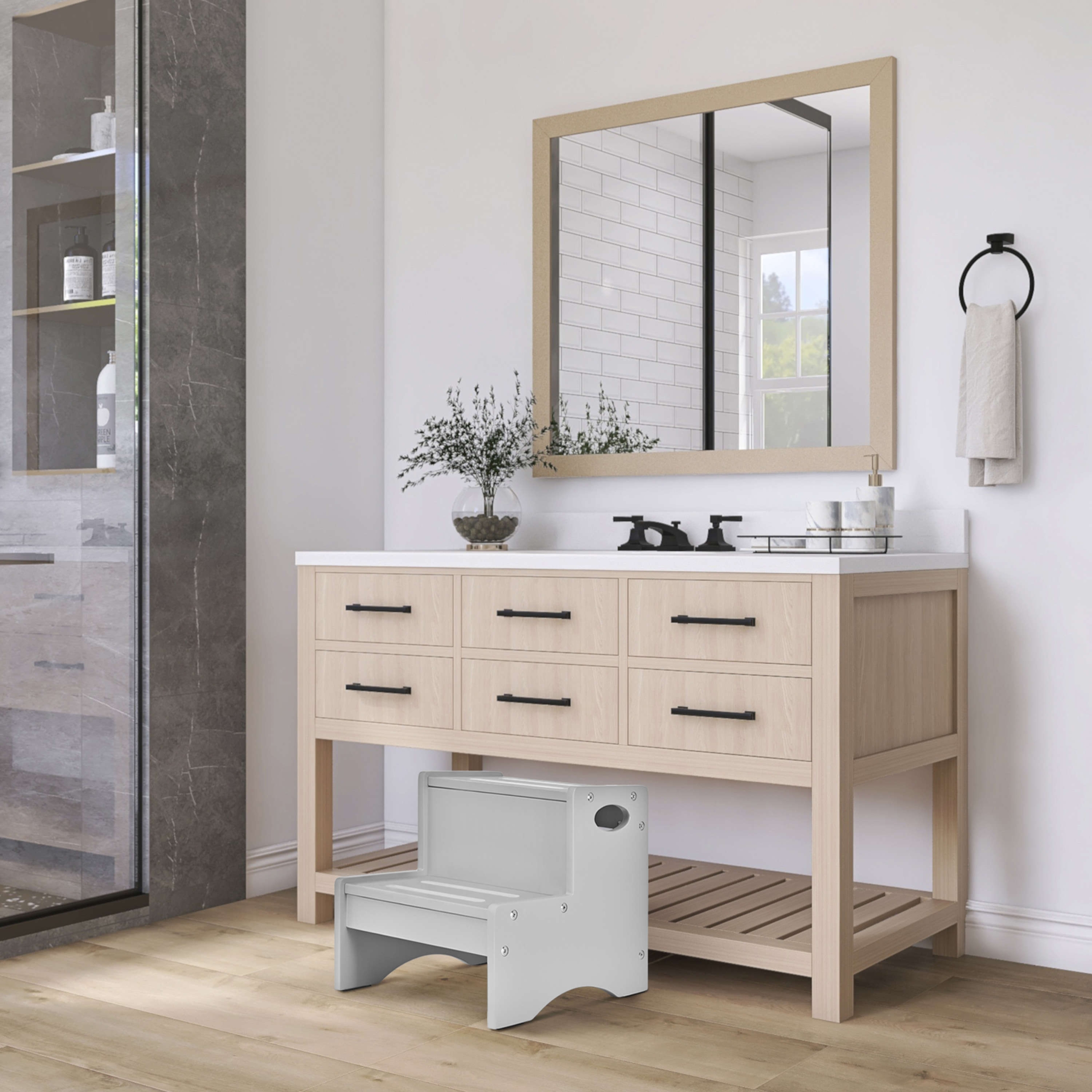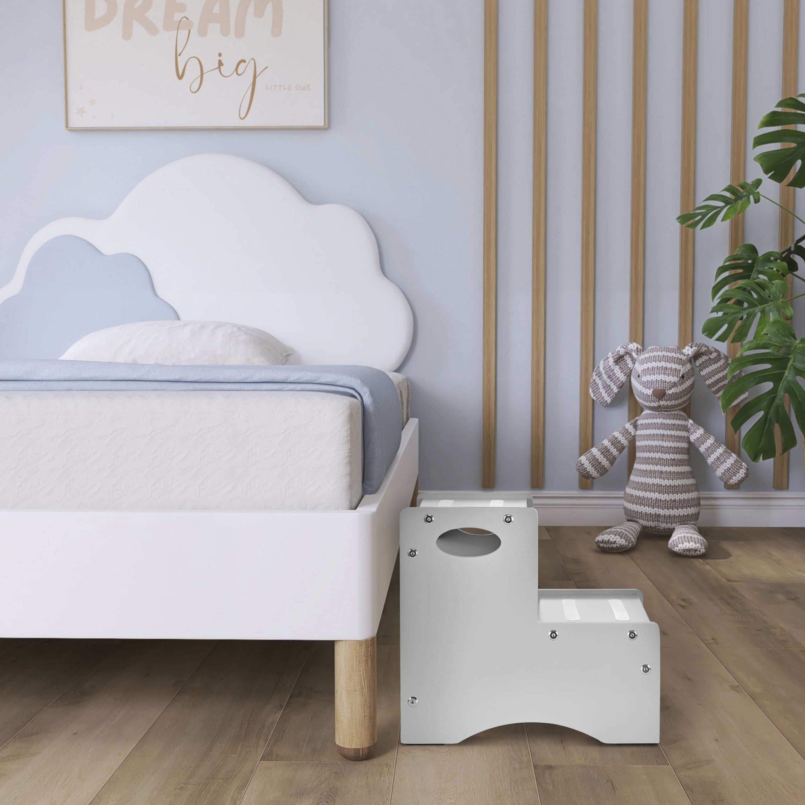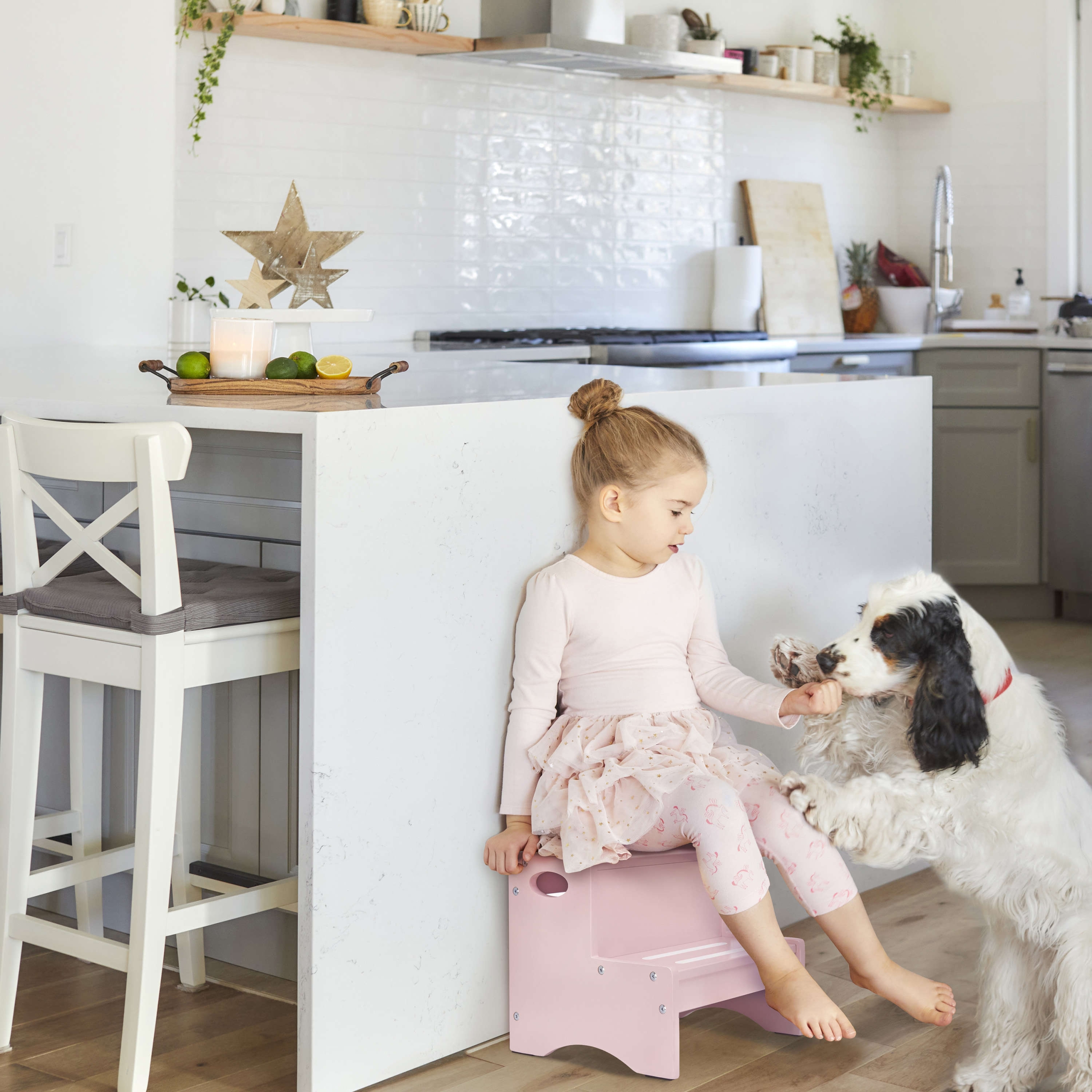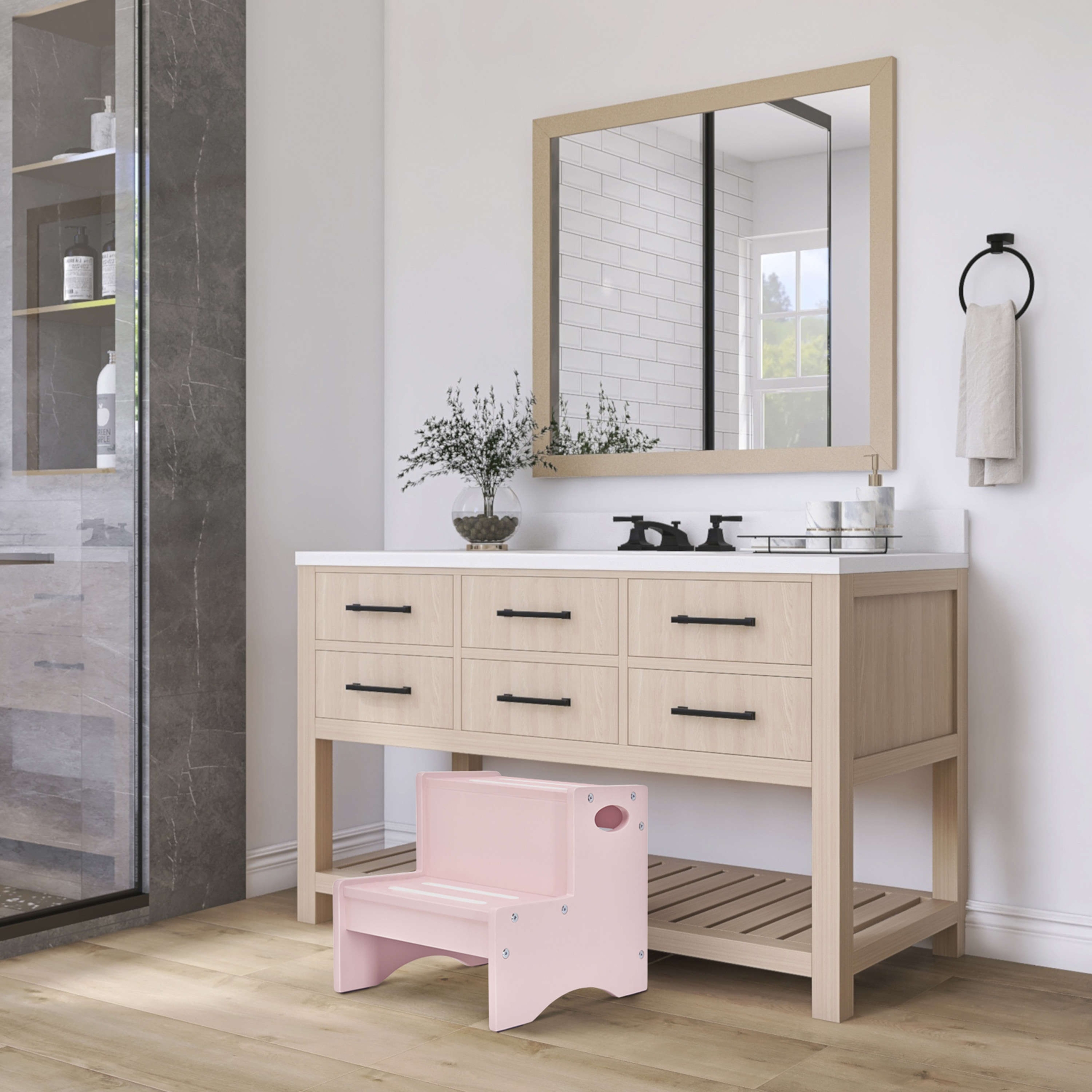 - DESIGNED FOR YOUR AESTHETIC: This easy-to-assemble step stool is available in 4 versatile, non-toxic finishes – White, Natural, Pink, and Pebble Grey.