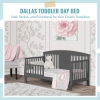 • IDEAL TRANSITION BED: The Dallas Toddler Day Bed sports a convenient low-to-floor- design, making it easy for your child to get in and out of bed. A removable side safety guard rail prevents any accidental falls while sleeping.
