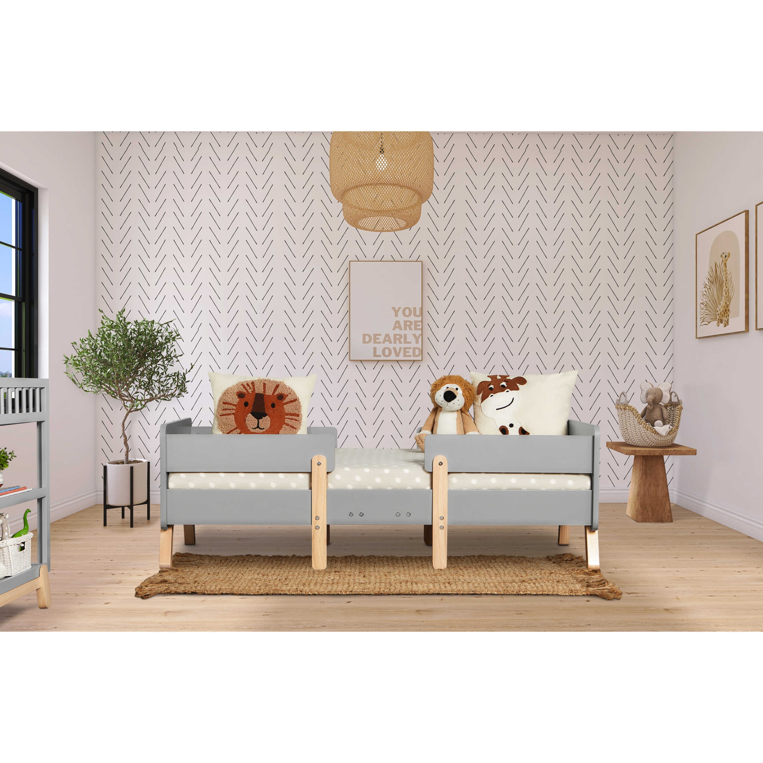 • EXCITING FINISHES: With a sweet, ultra-modern style that complements most nurseries, this toddler bed comes in 3 finishes - Black, Grey & White and Natural.