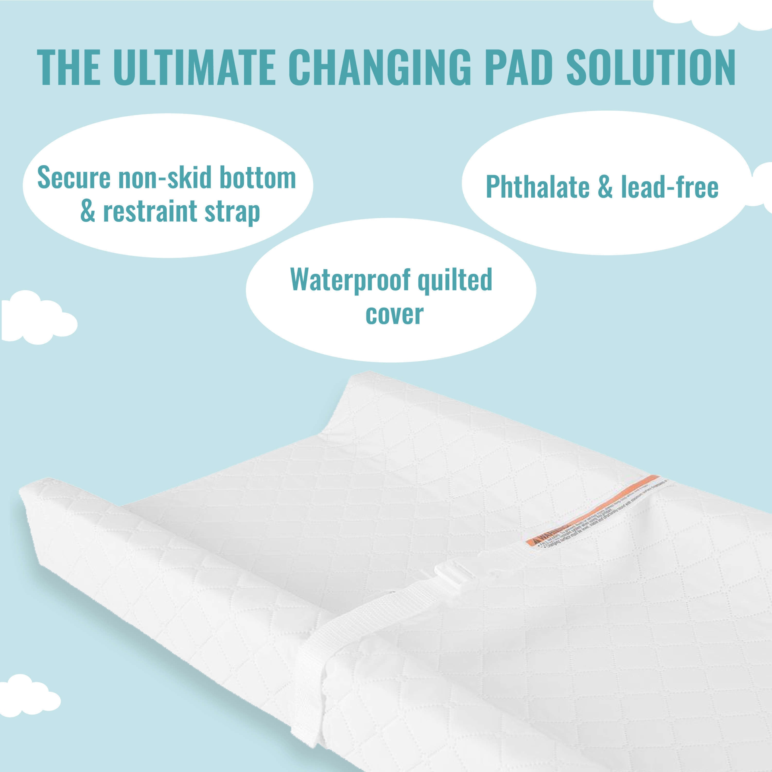 - SAFE & HEALTHY: The waterproof, quilted cover locks out moisture and stains to create a safe and hygienic changing spot.