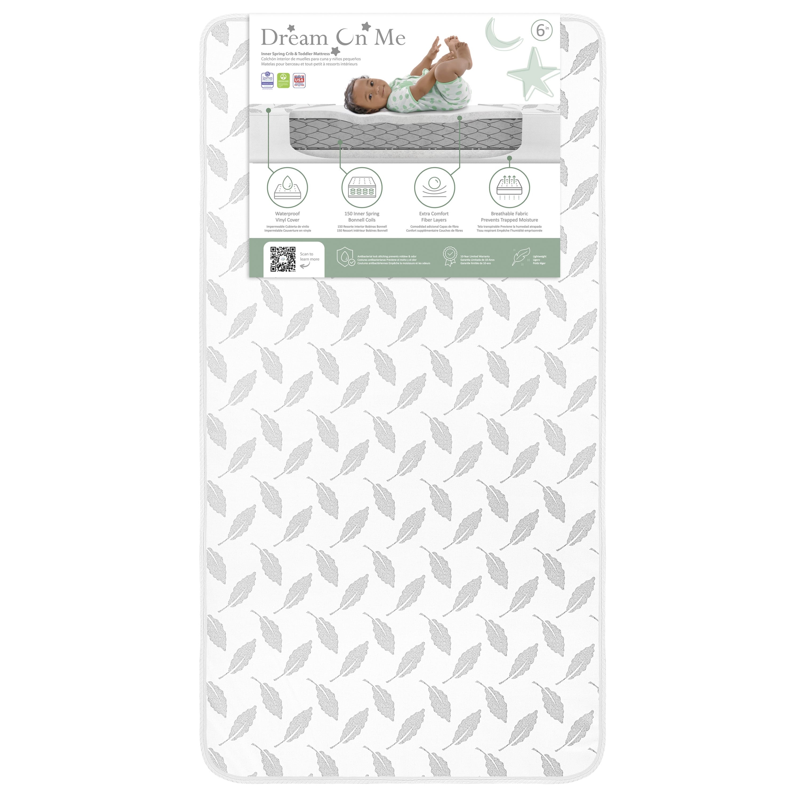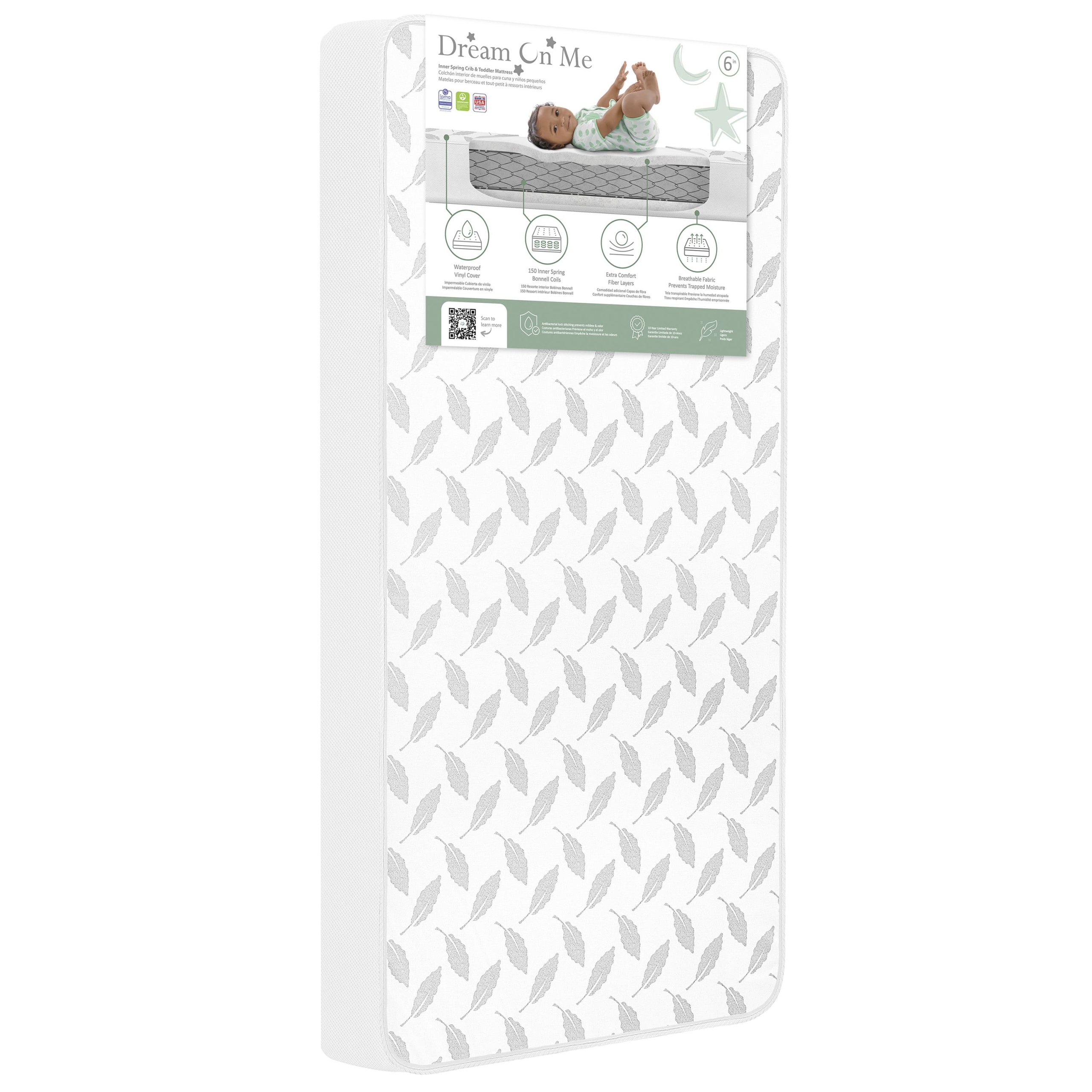 Dream On Me, Two Sided 6 inch Full size Crib spring coil mattress introduce a breathe flow technology. Our mattress is designed to fit standard full size cribs it features a 132 durable, interwoven, heat tempered, steel coils providing supreme comfort, hypo-allergenic, CertiPUR-US certified layer for comfort these mattress are covered with a breathe –flow material on the infant side and a waterproof cover on the toddler side with lock stitch seams. Dream On Me mattress meets the Federal Flammability Standard ,rest easy knowing this mattress is tested for phthalate and lead and constructed with quality materials and workmanship in the USA.