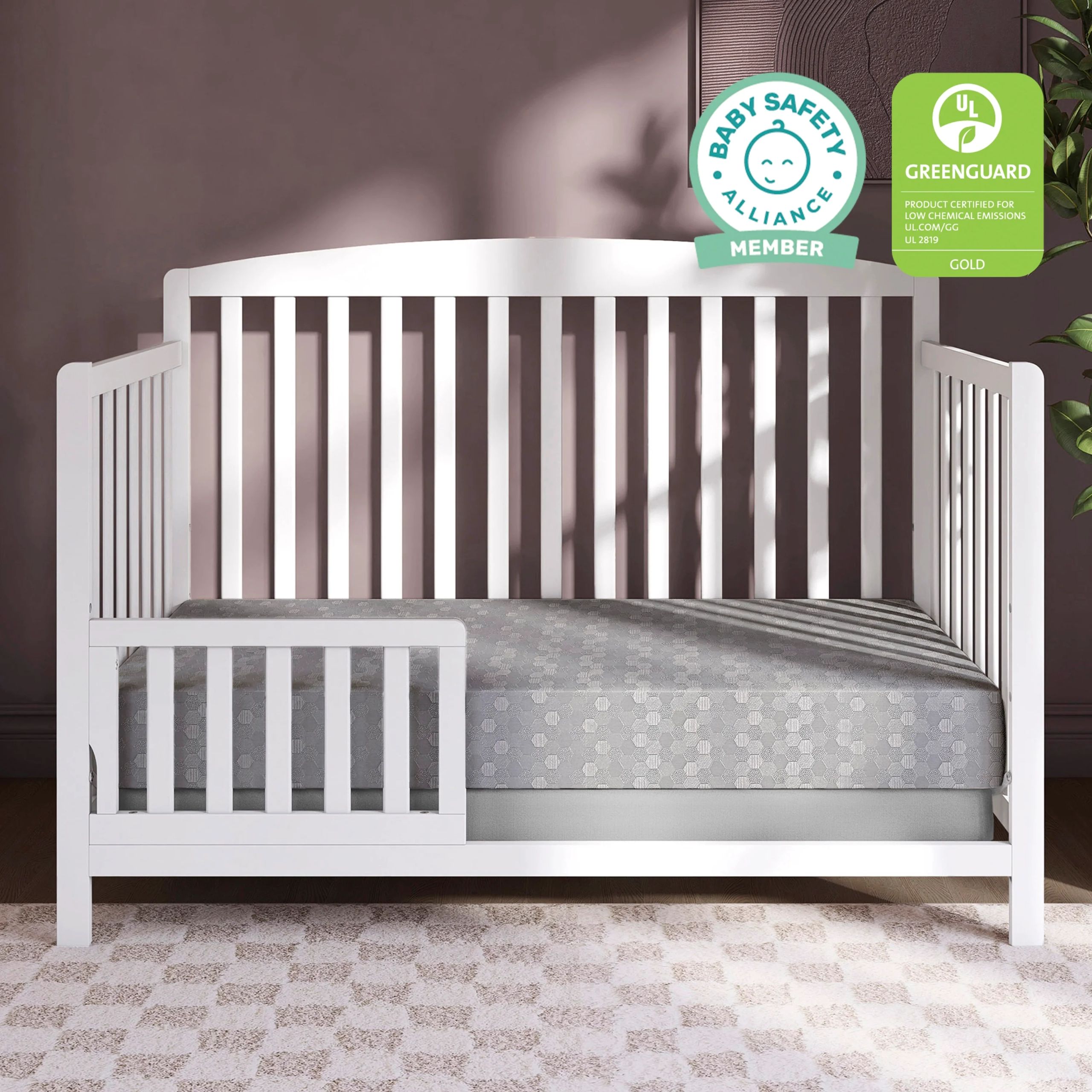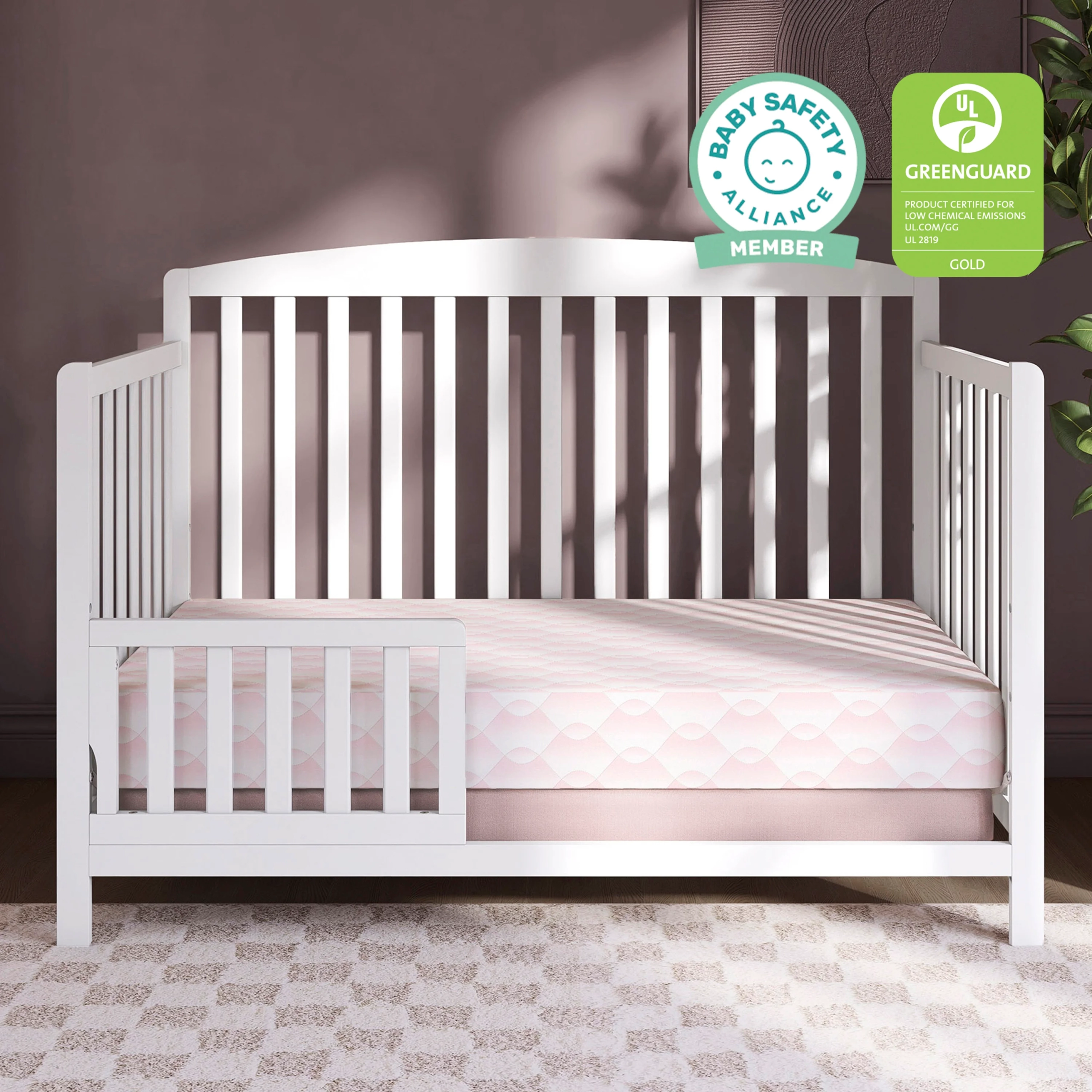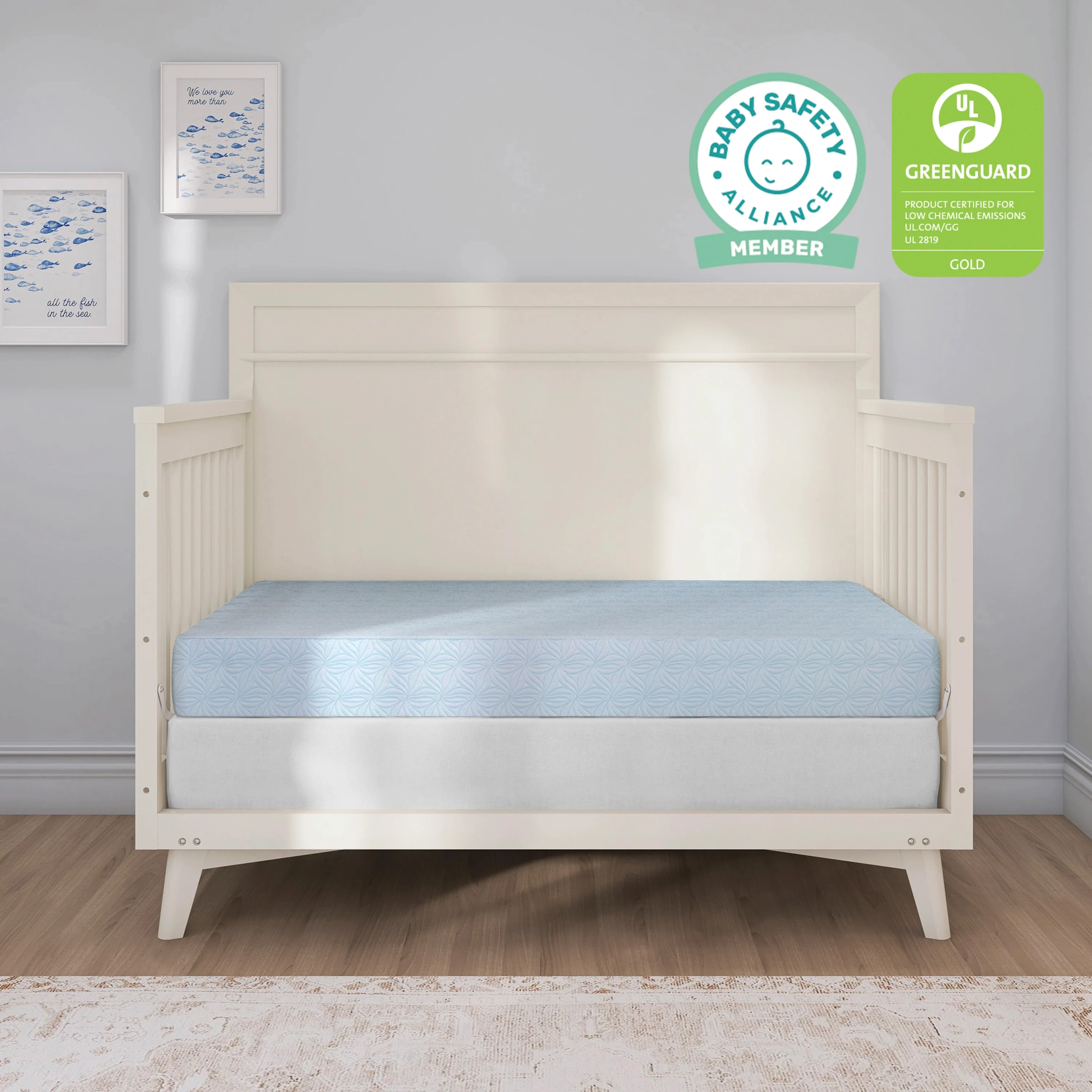 The Dream On Me 2 in 1 Little Lullaby Crib and Toddler Mattress offers the perfect blend of safety, comfort, and eco-conscious design with a dual-sided surface—firm for infants and soft for toddlers—wrapped in a waterproof vinyl cover that’s easy to clean. It’s made from 5 inches of fiber containing 75% recycled materials and features anti-bacterial lock stitching for added protection. This mattress meets the highest safety standards, including Greenguard Gold and BSA certifications. Lightweight and durable, it comes with a 5-year limited warranty for your peace of mind.