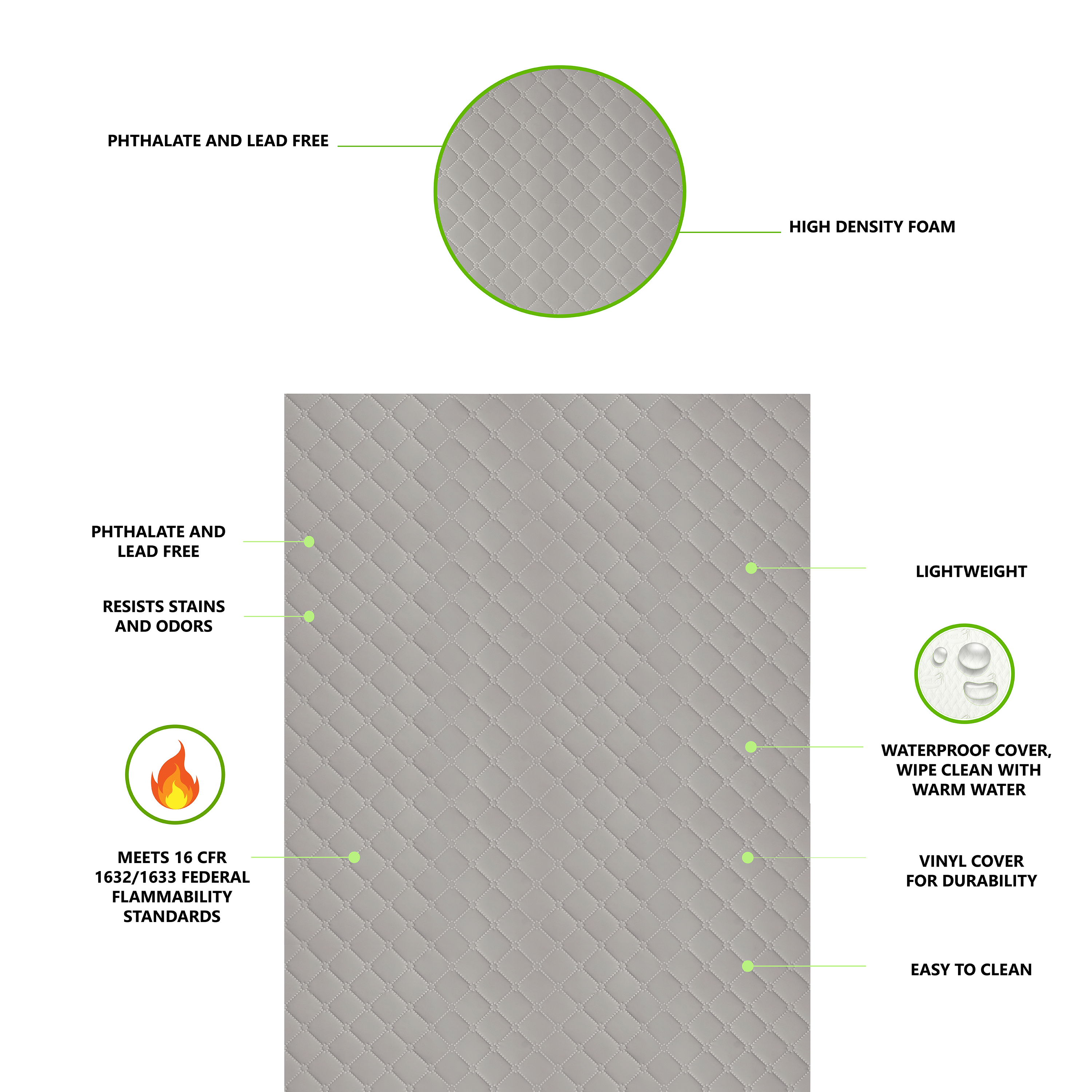 STYLISH FINISHES, GREAT FIT: The mattress comes in two finish options: gray and bear print. It is lightweight for easy sheet changing and the square corner design ensures a snug fit.