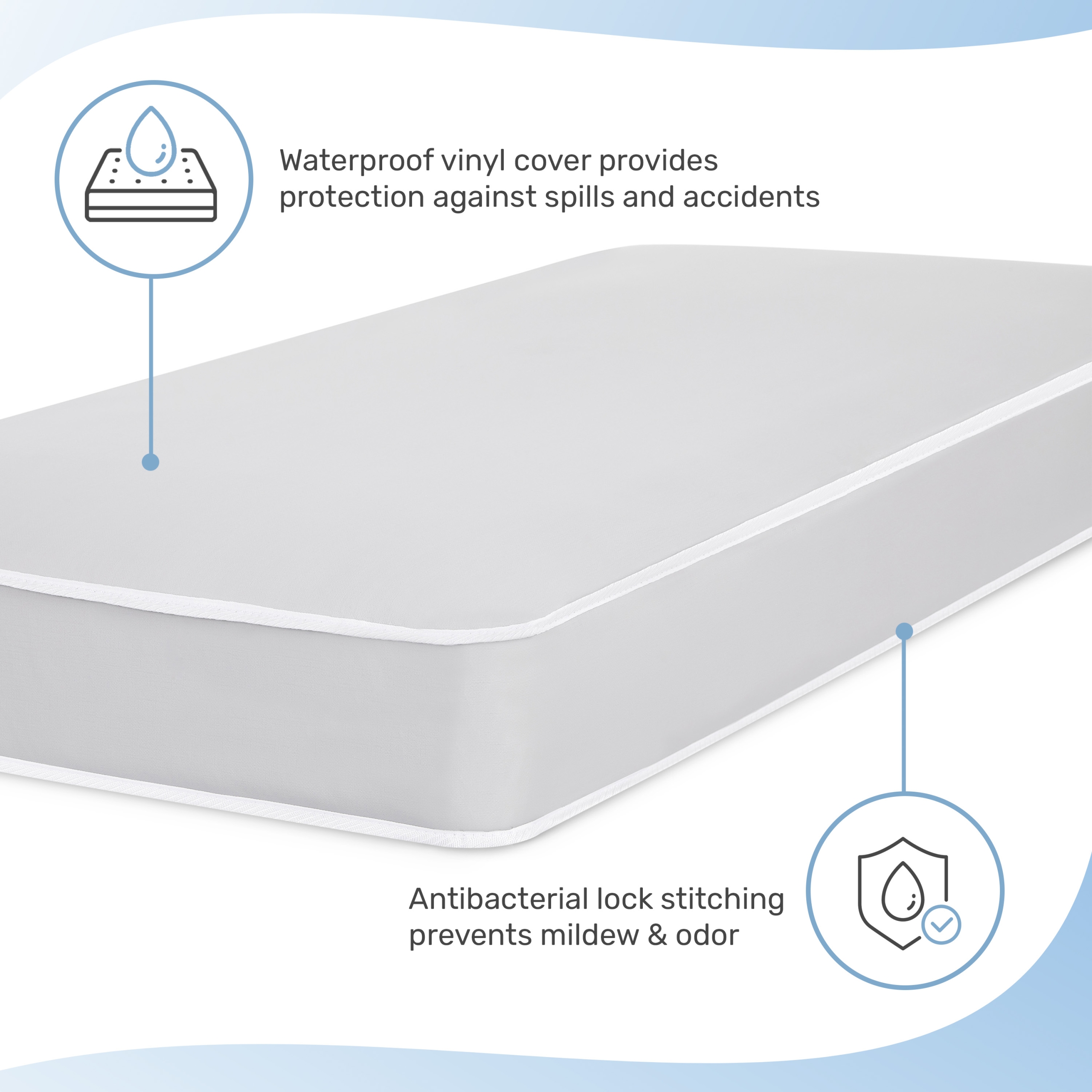 • Lightweight; 96 interwoven coils; hypo allergenic, waterproof cover; Phthalate and lead free.