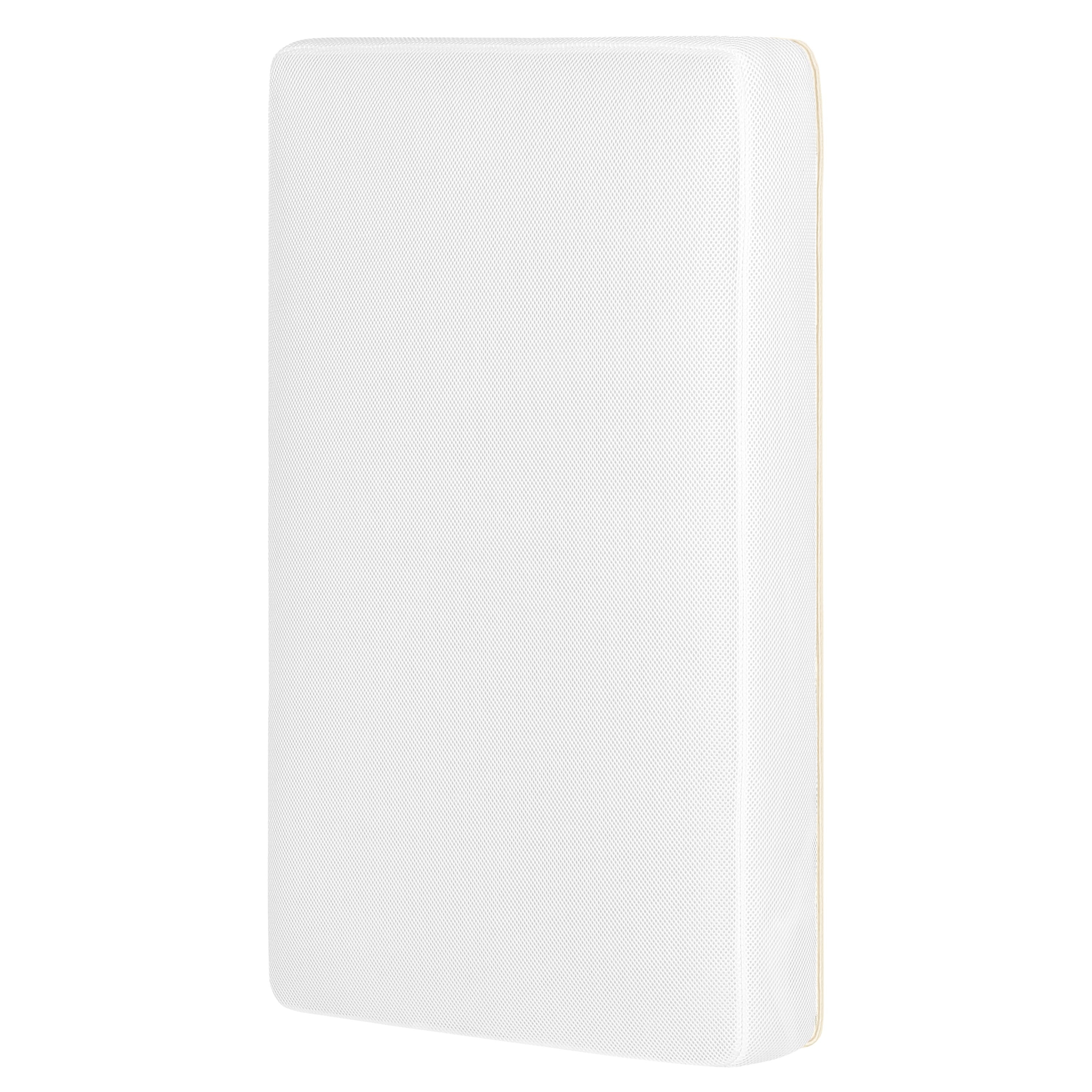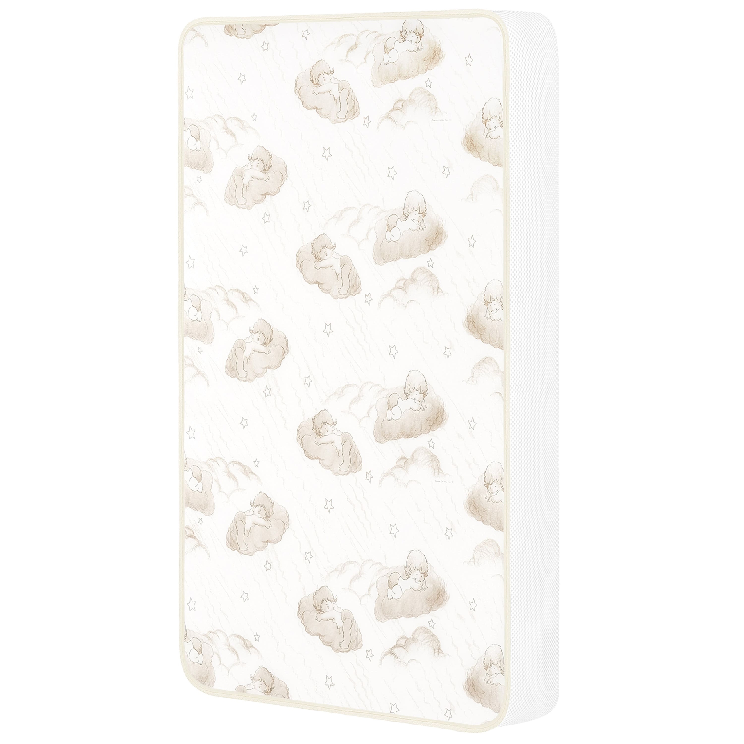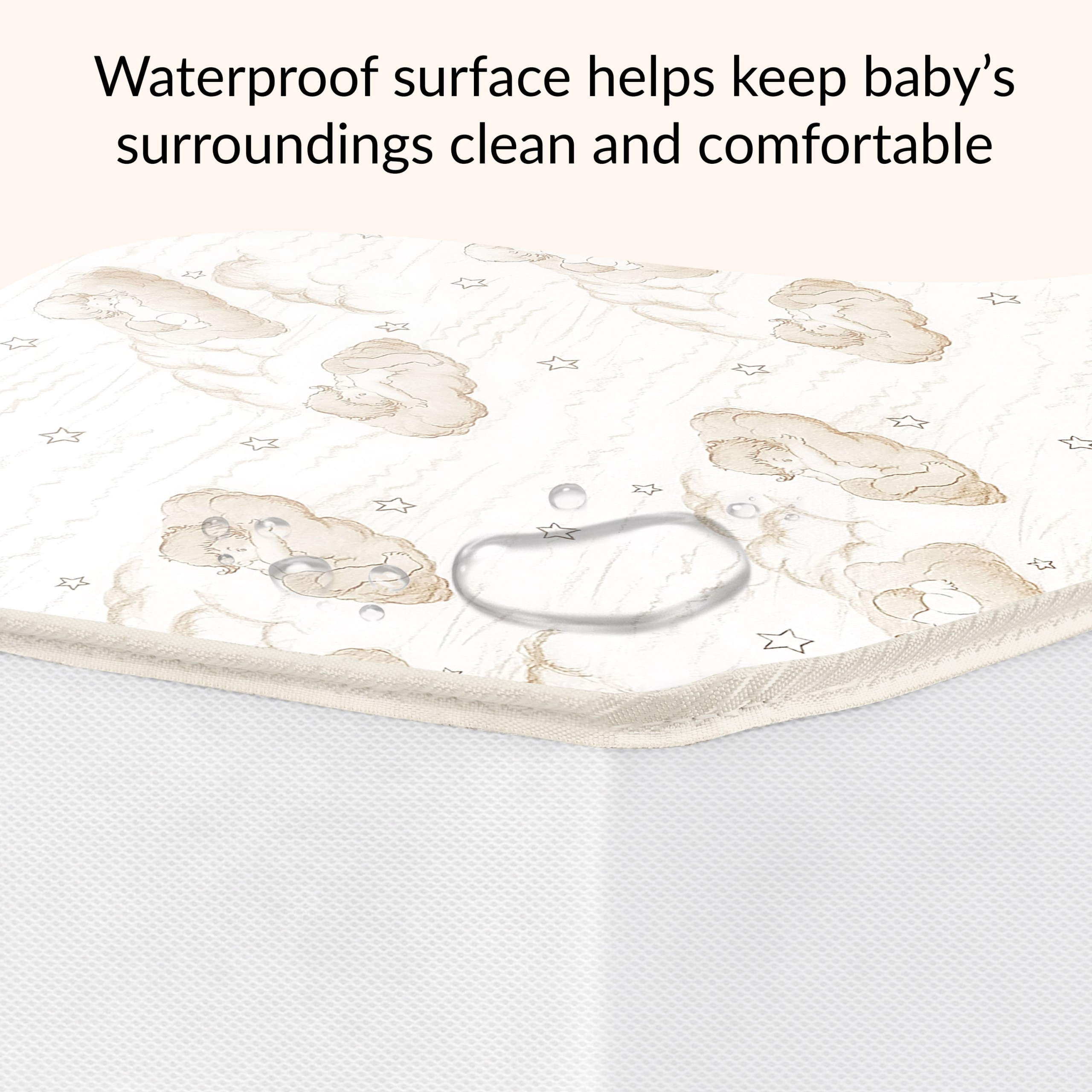• DUAL SIDED: This mattress is covered with a breathe-flow material on the infant side while the toddler side is protected with a waterproof cover.